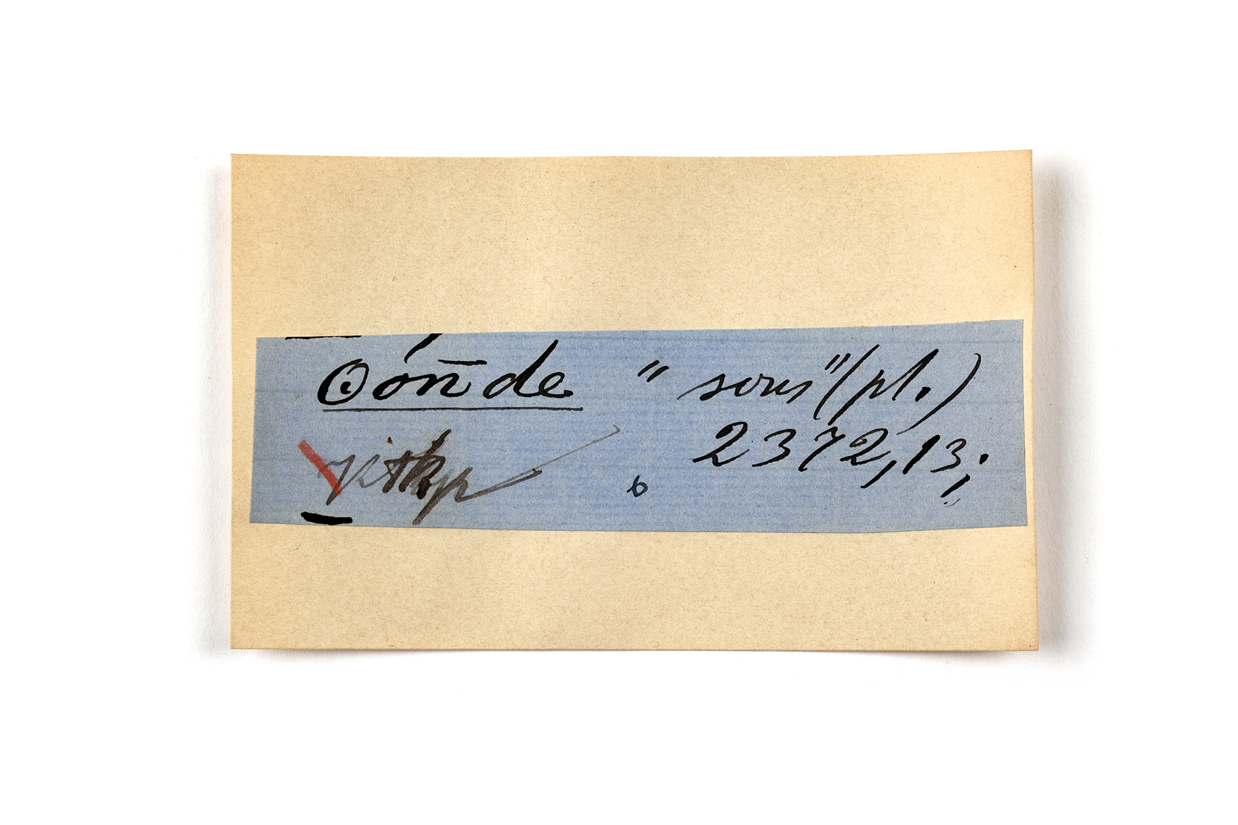 ink on blue paper glued on card