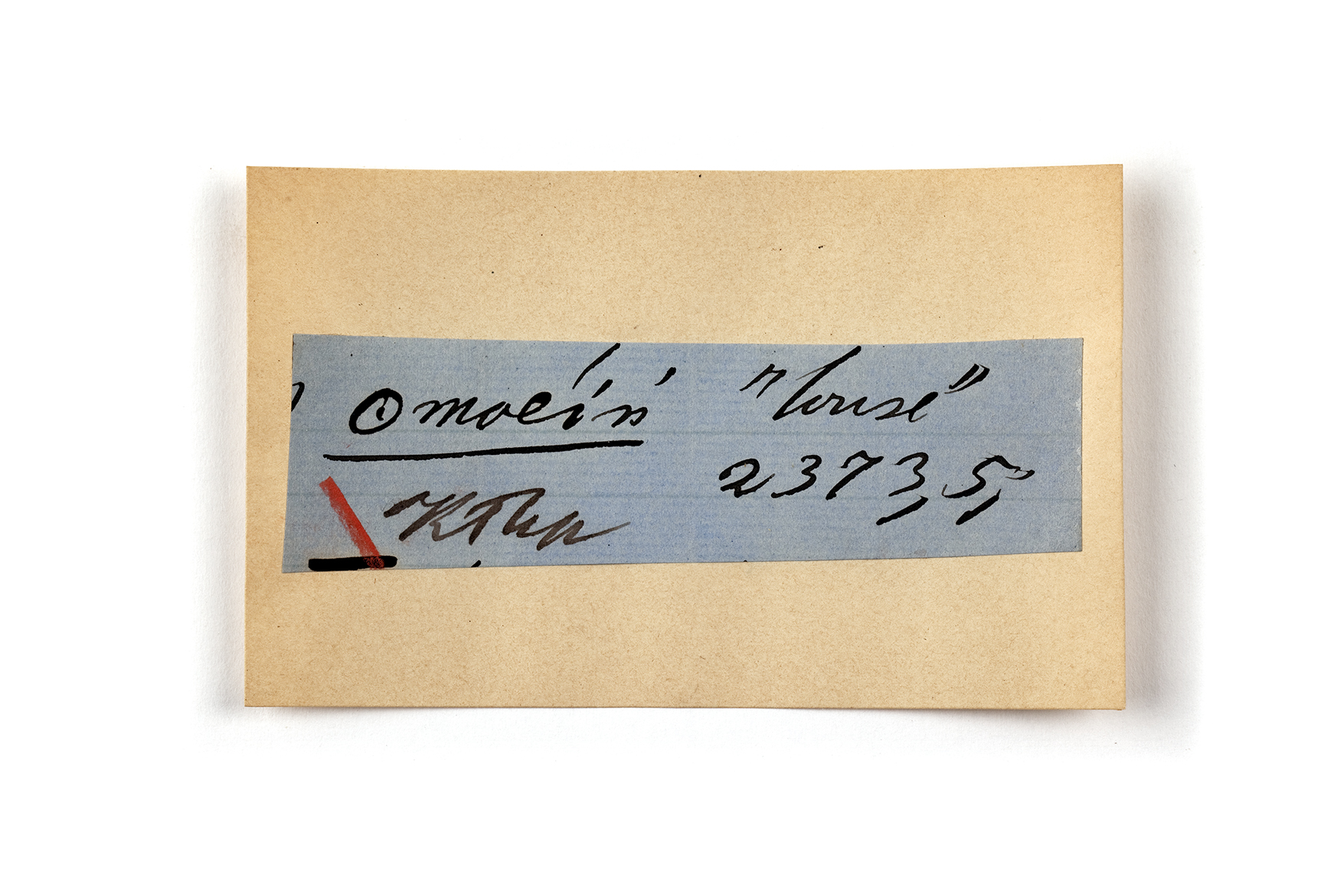 ink on blue paper glued on card