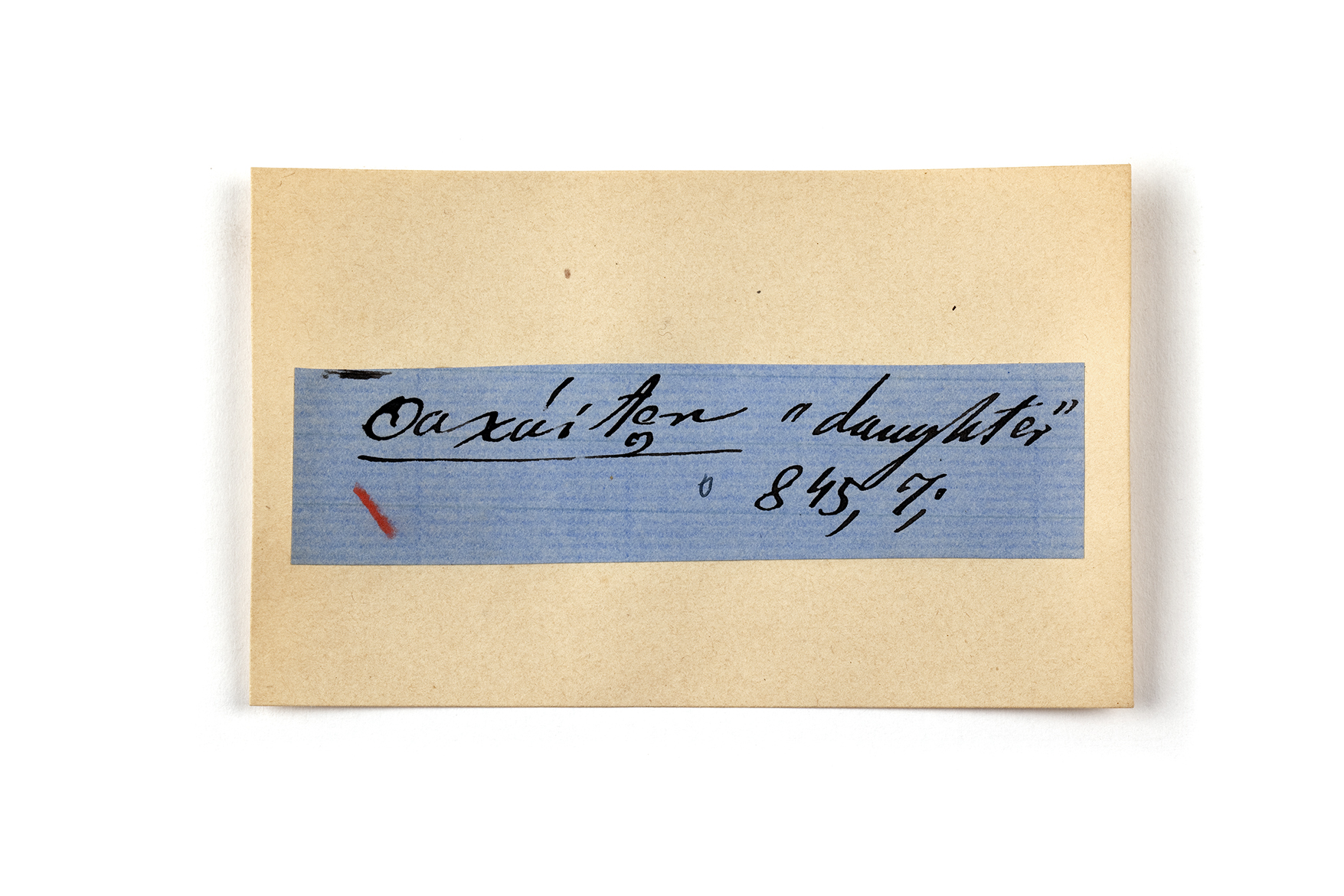ink on blue paper glued on card