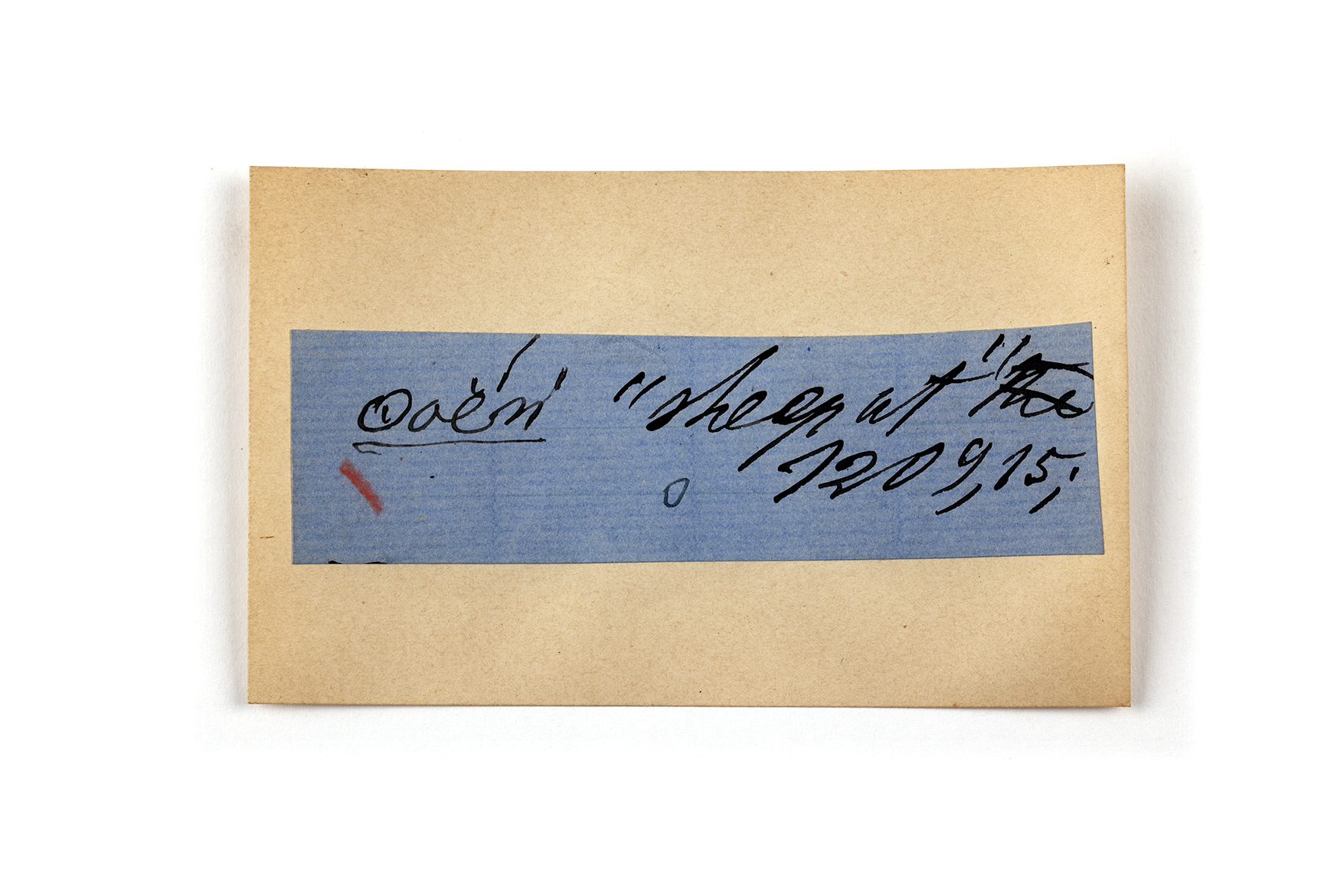 ink on blue paper glued on card