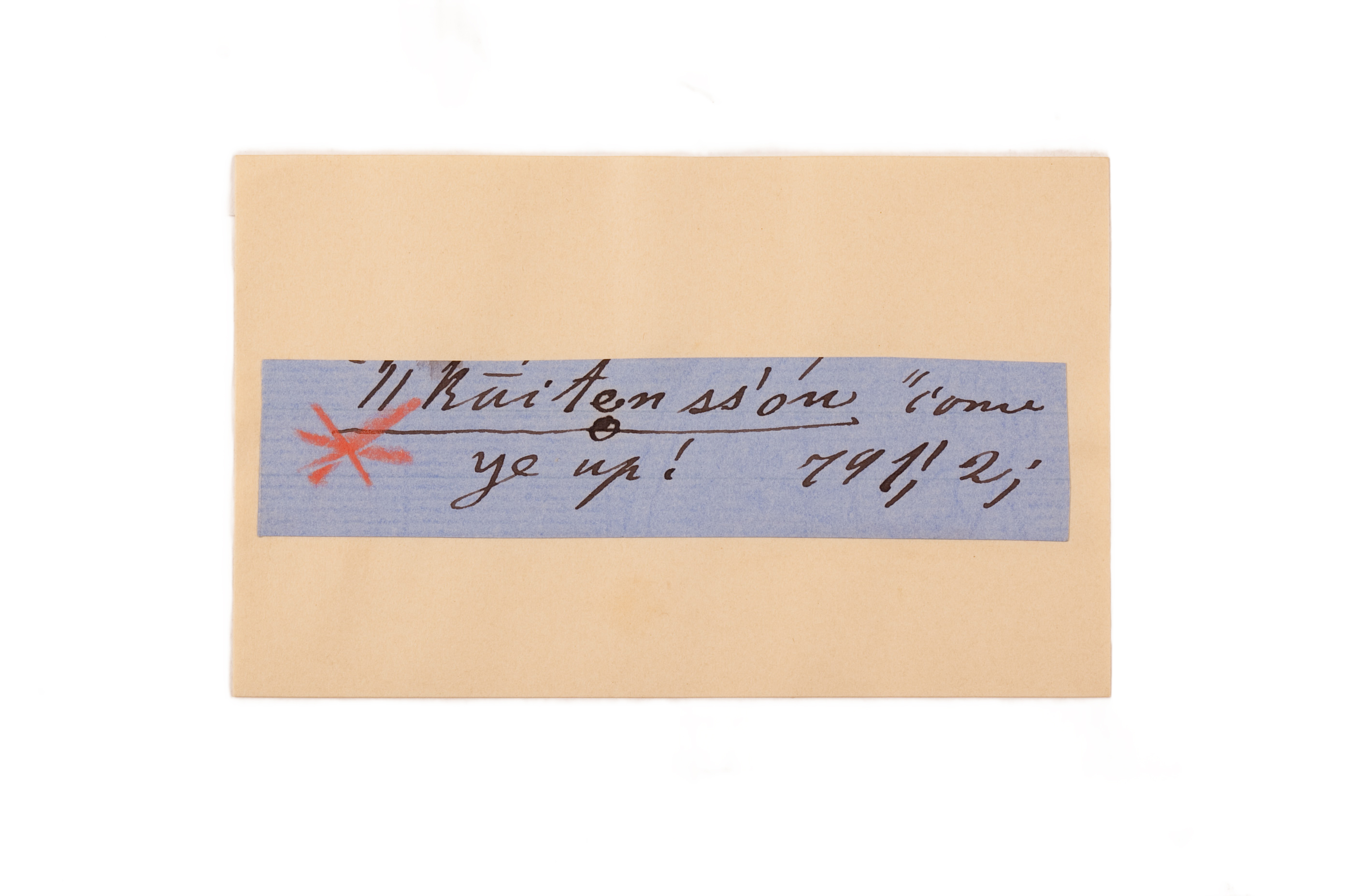 ink on blue paper glued on card
