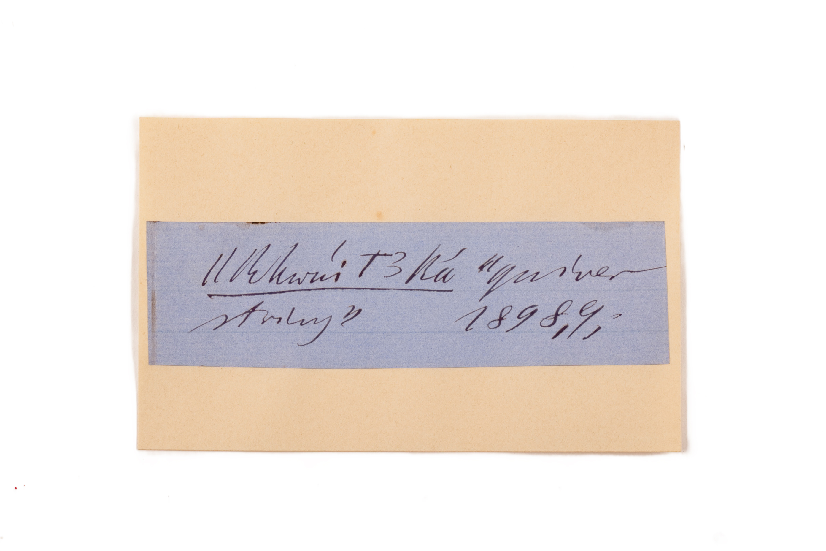 ink on blue paper glued on card