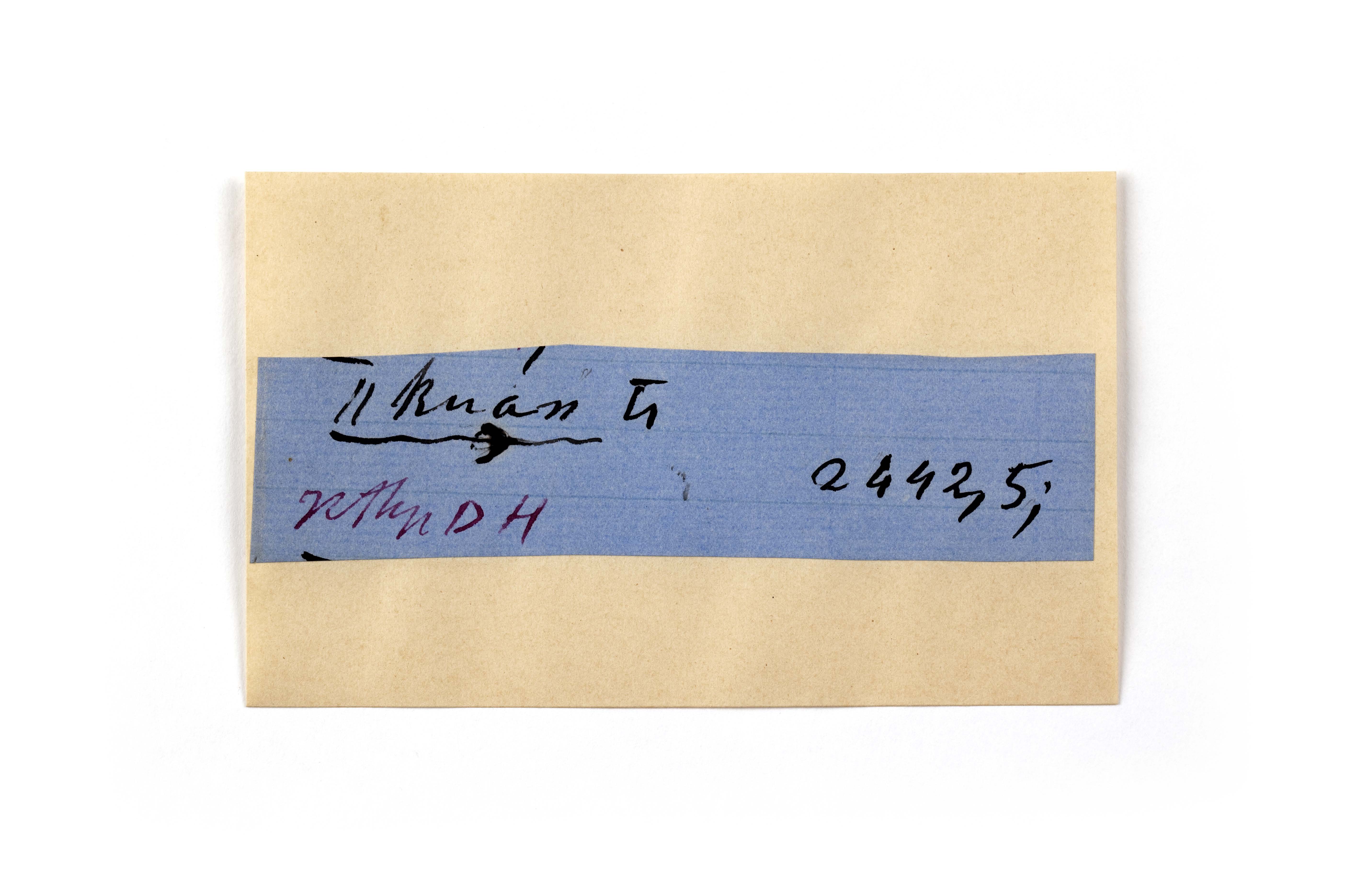 ink on blue paper glued on card