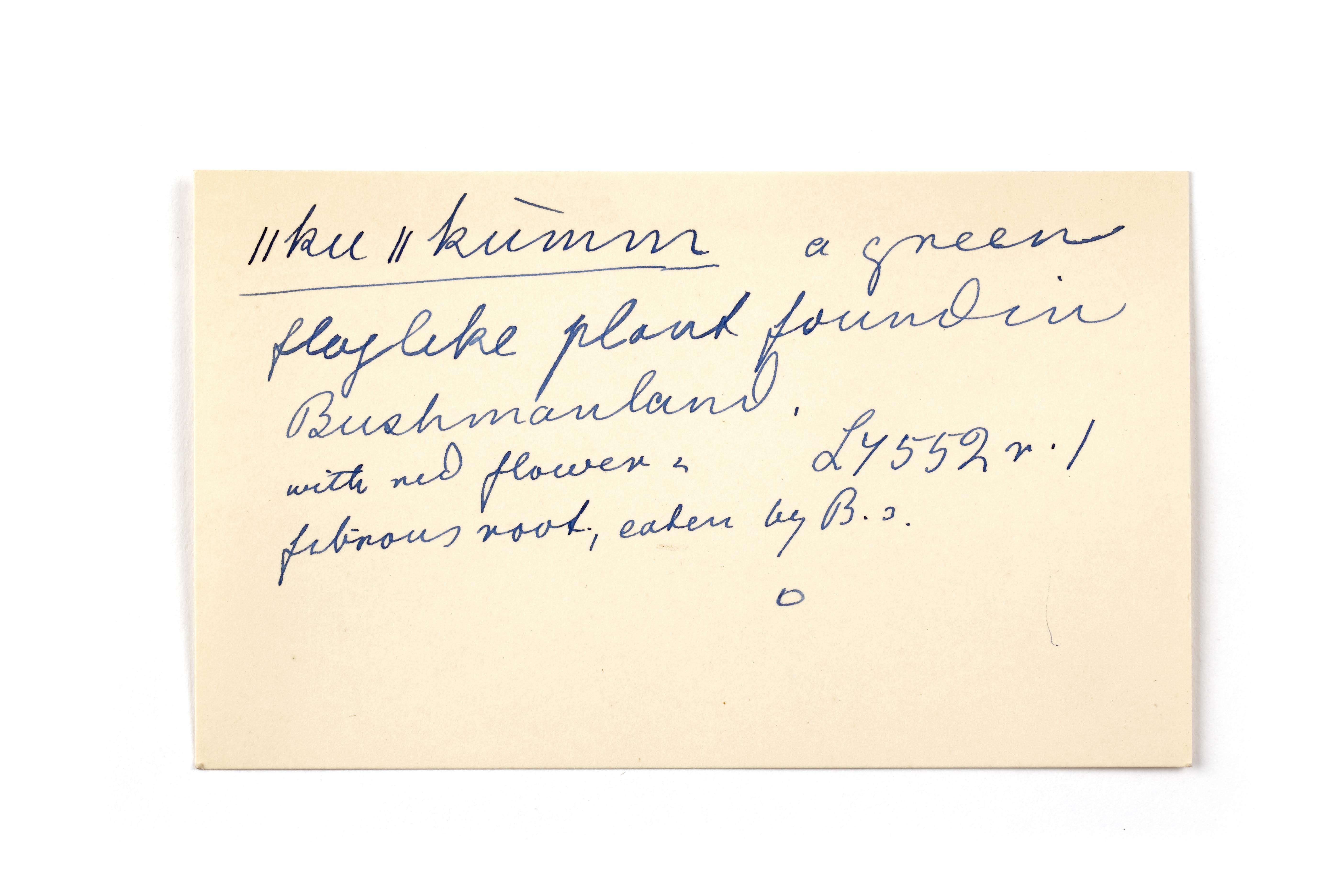 ǁ_2532 green fley-like plant with red flower and fibrous root (eaten by Bushmen) (found in Bushmanland) (a)