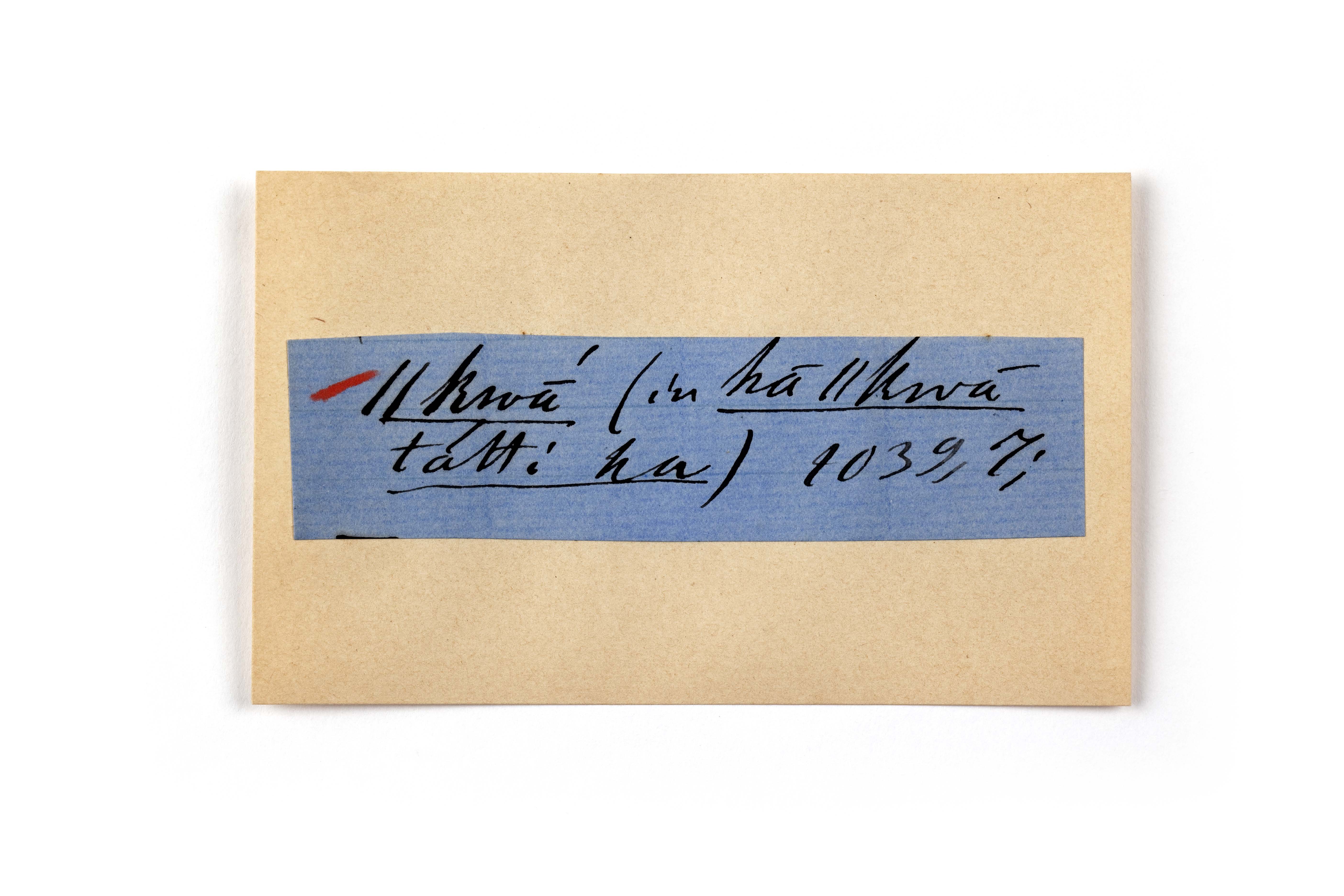 ink on blue paper glued on card