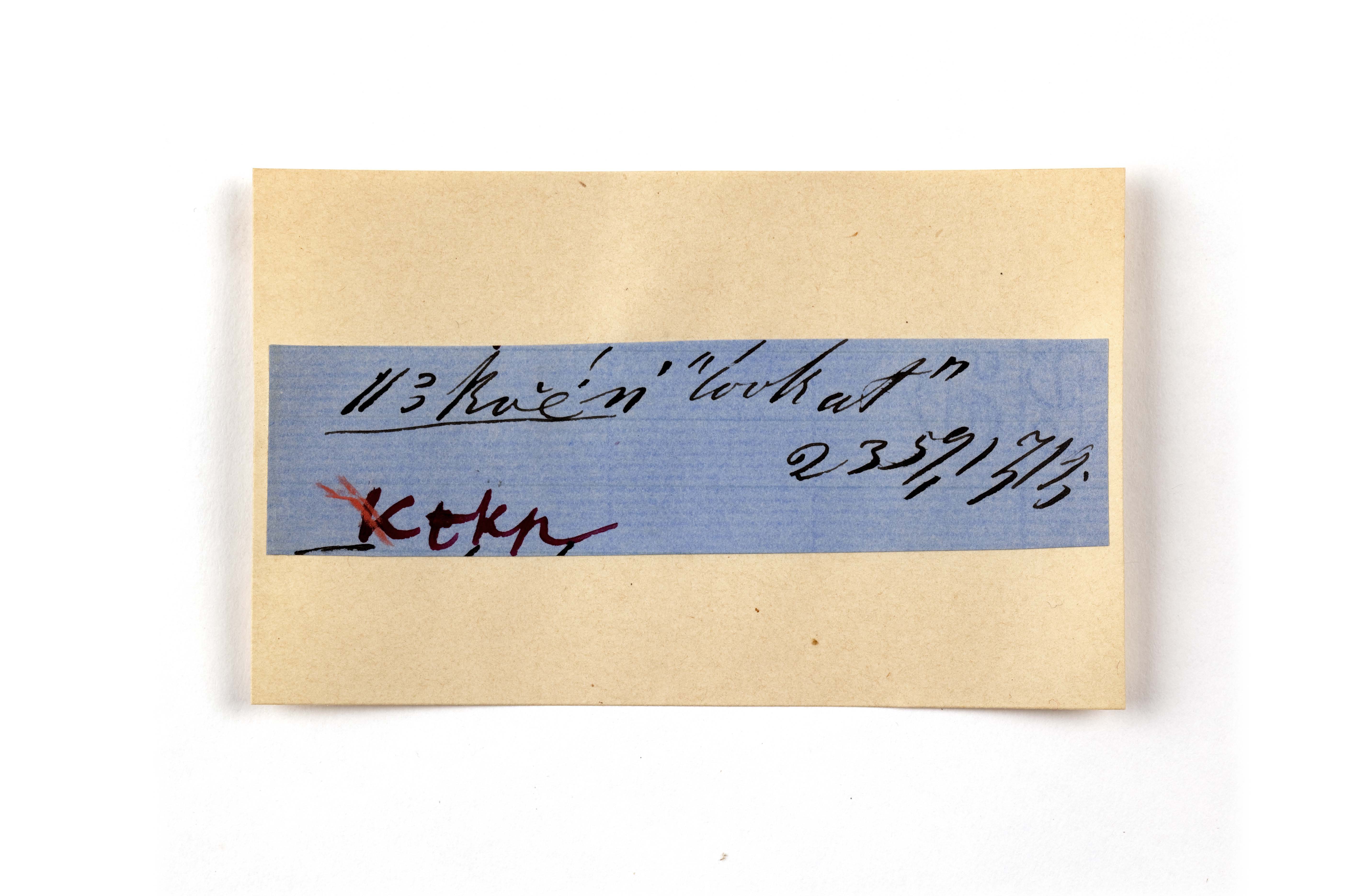 ink on blue paper glued on card