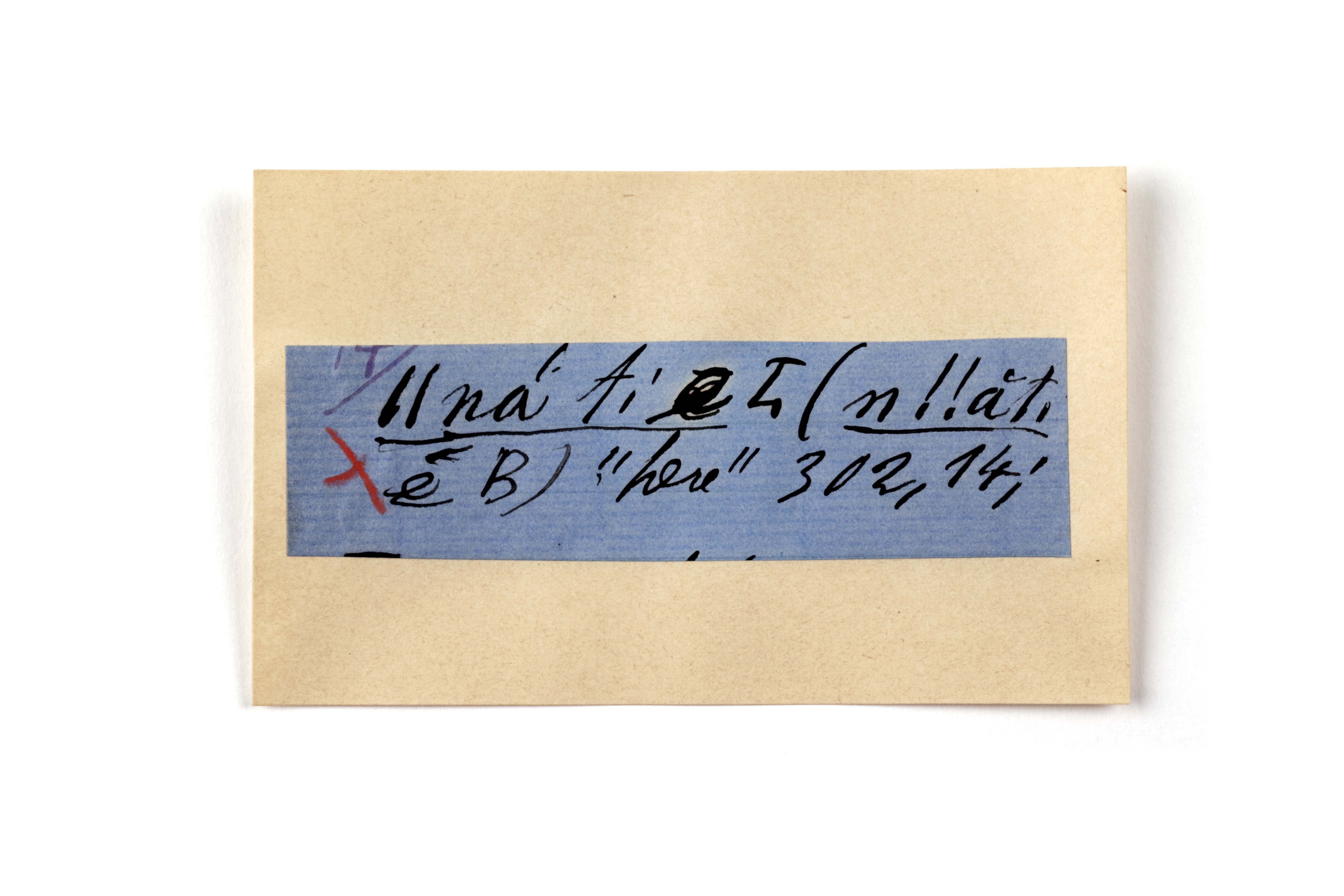 ink on blue paper glued on card