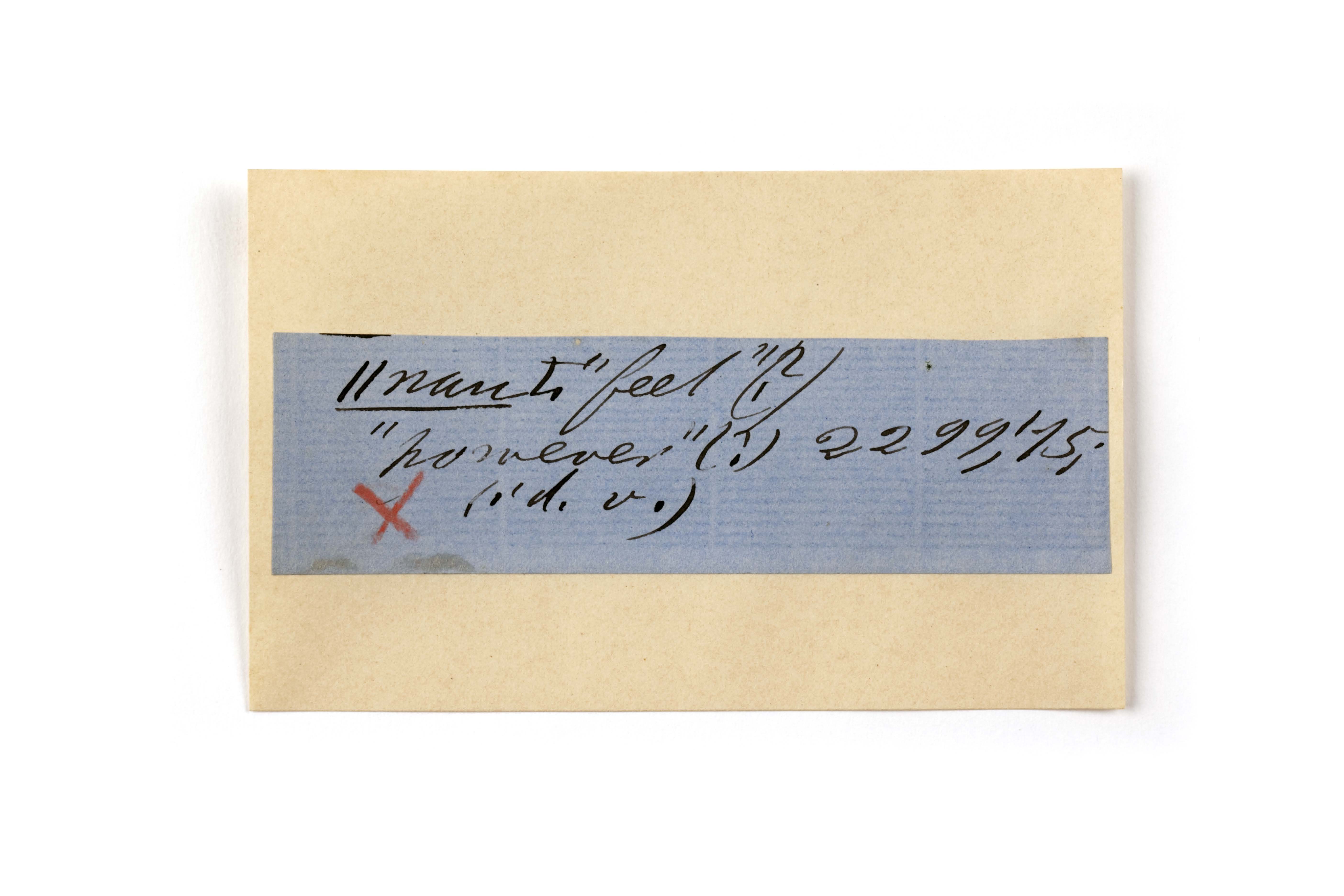ink on blue paper glued on card