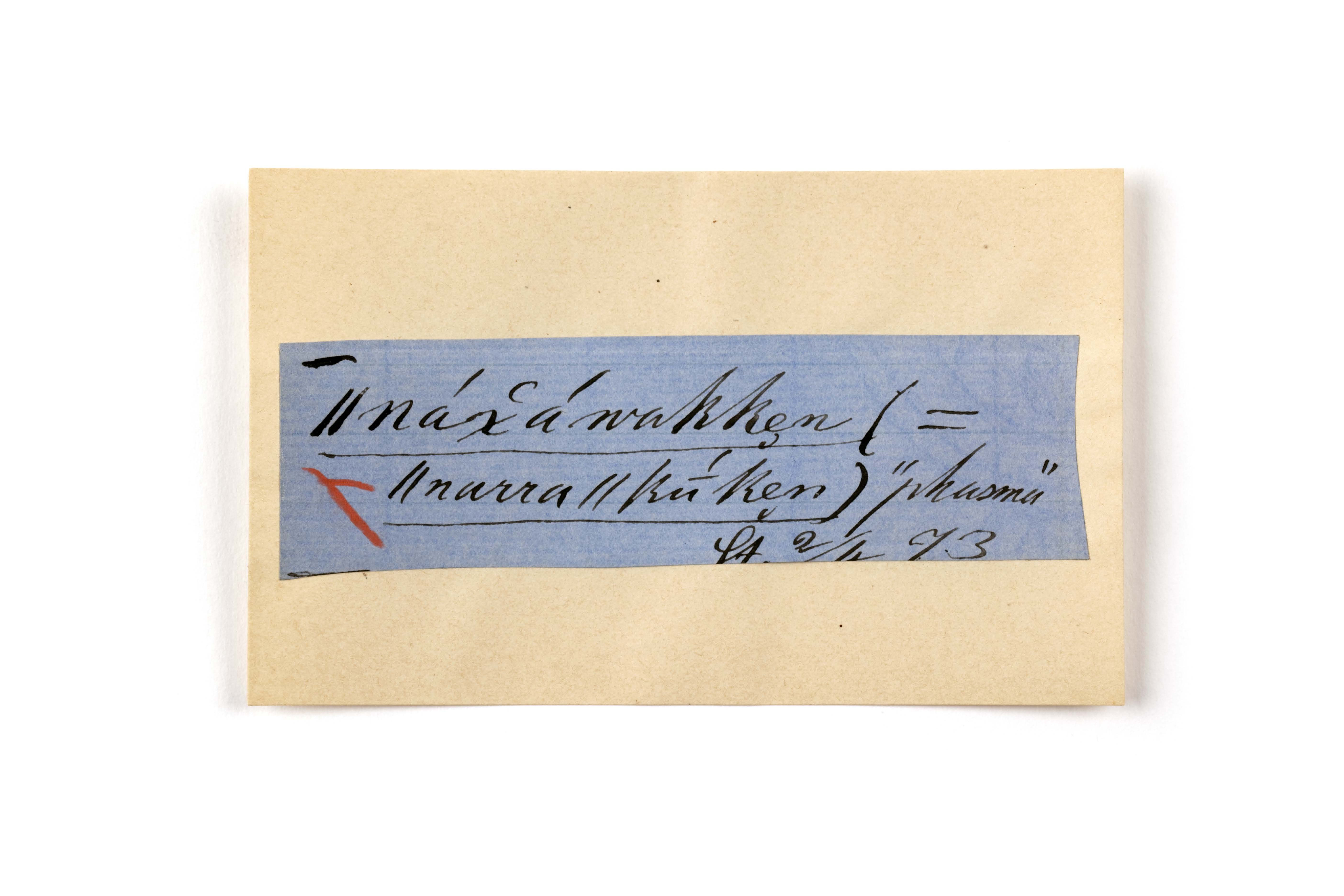 ink on blue paper glued on card