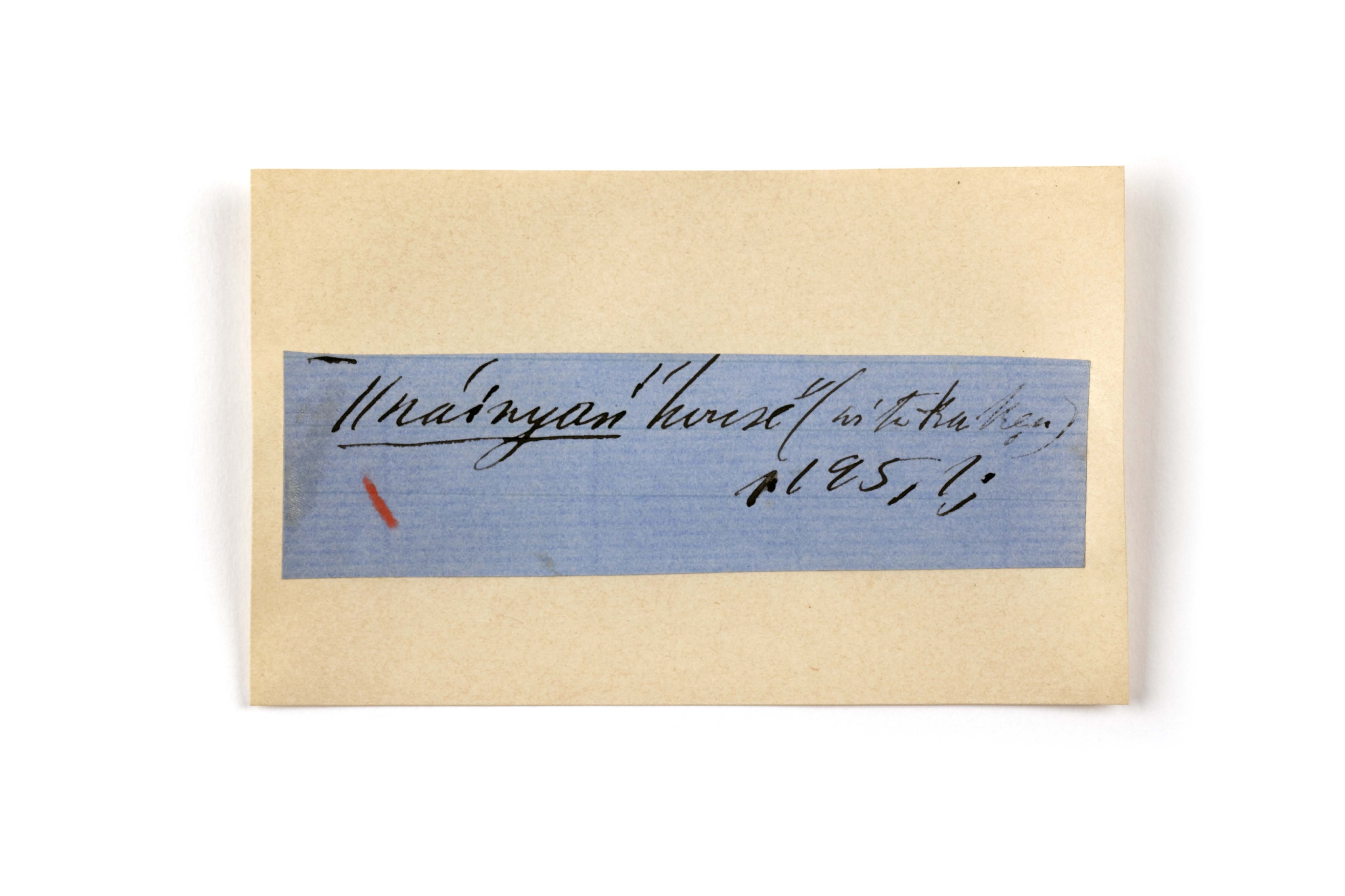 ink on blue paper glued on card