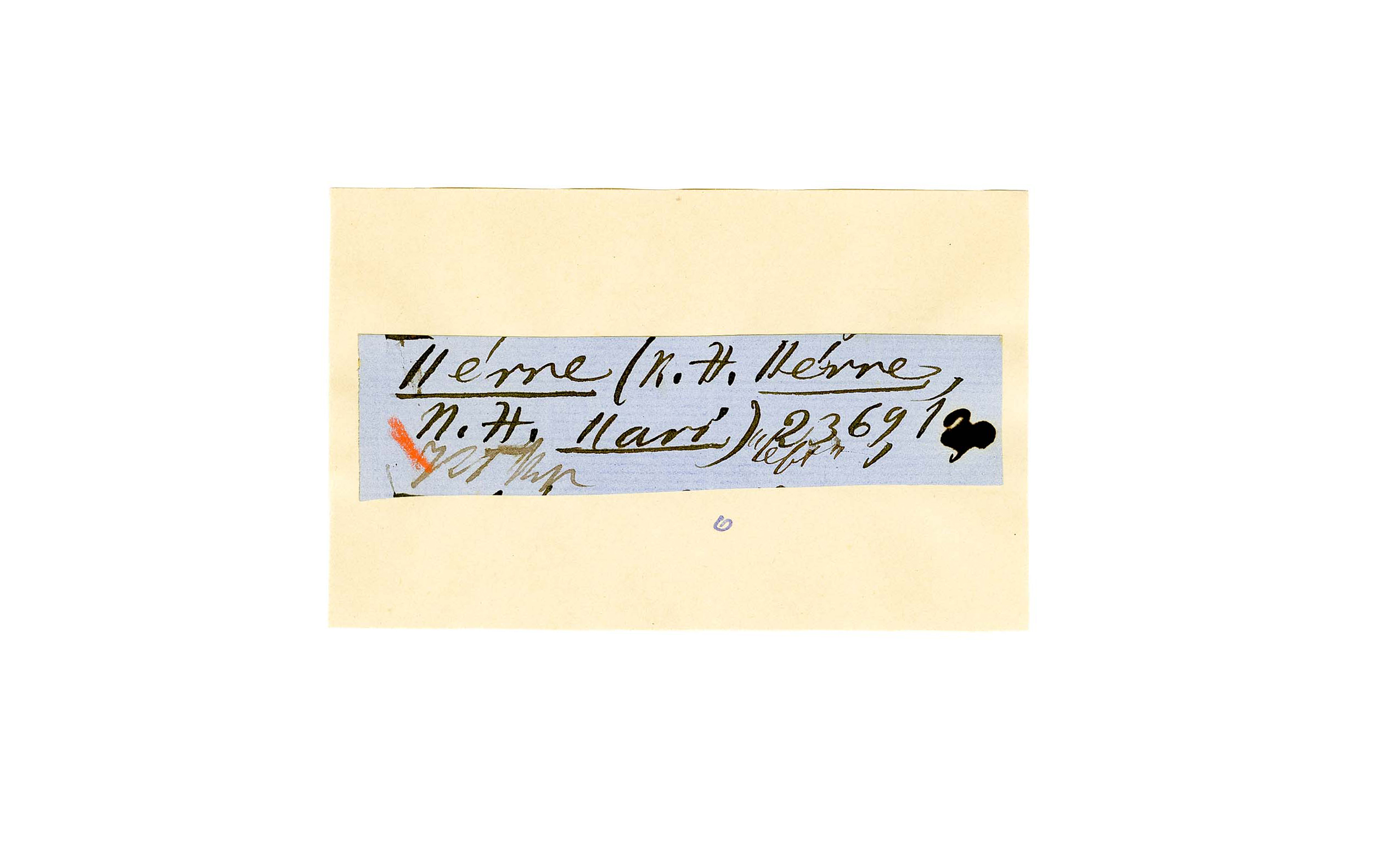 ink on blue paper glued on card