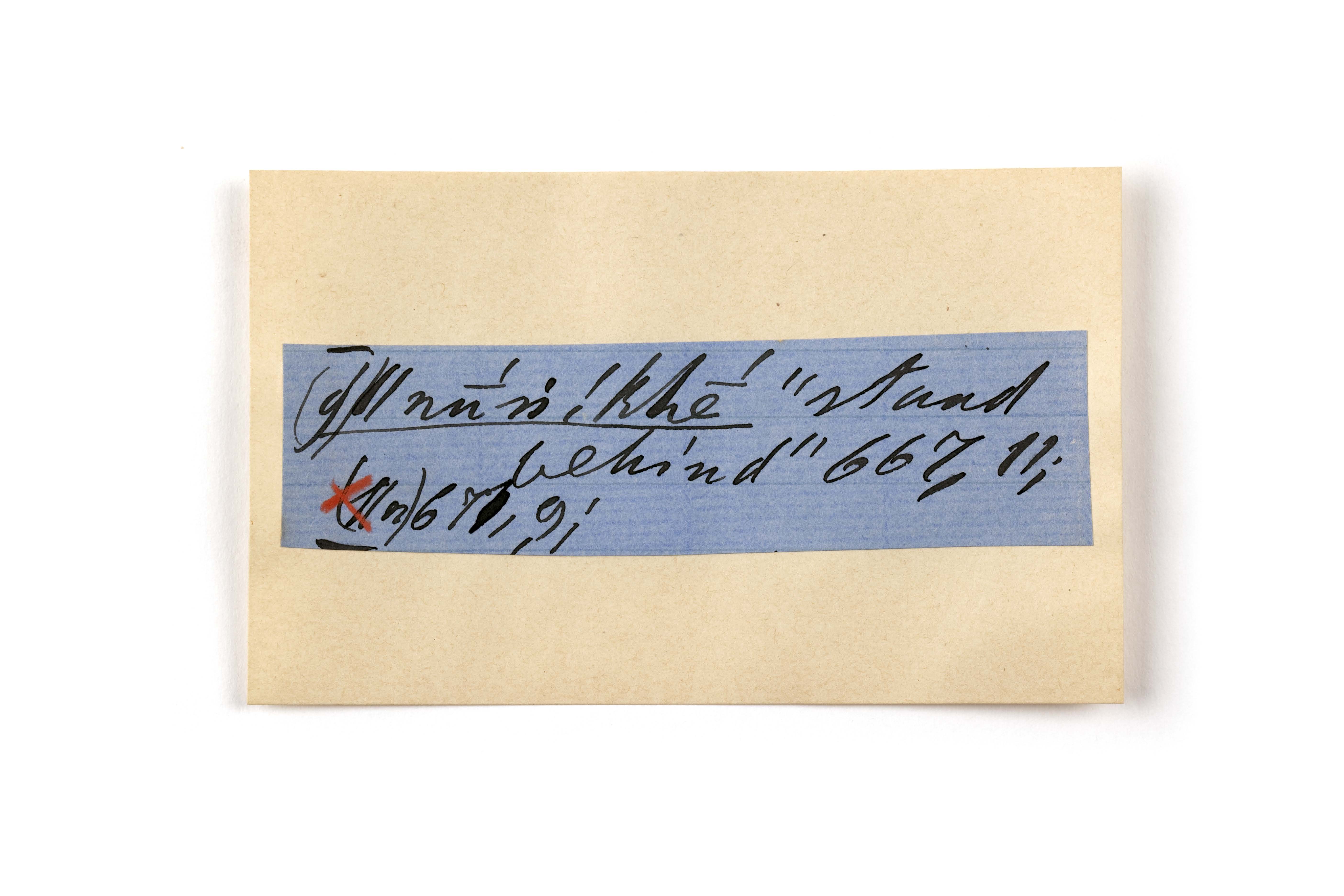 ink on blue paper glued on card
