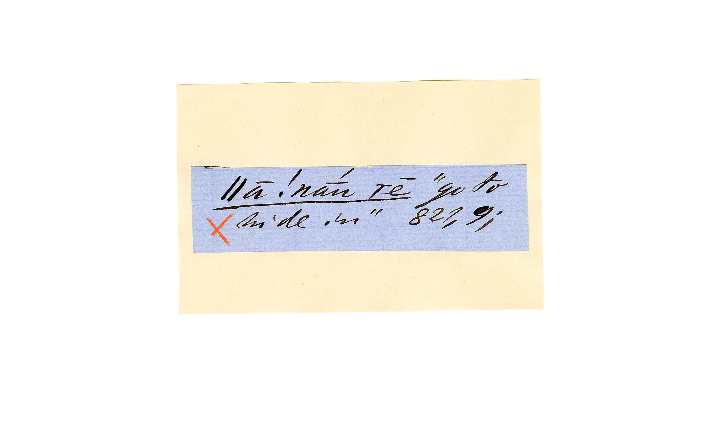 ink on blue paper glued on card