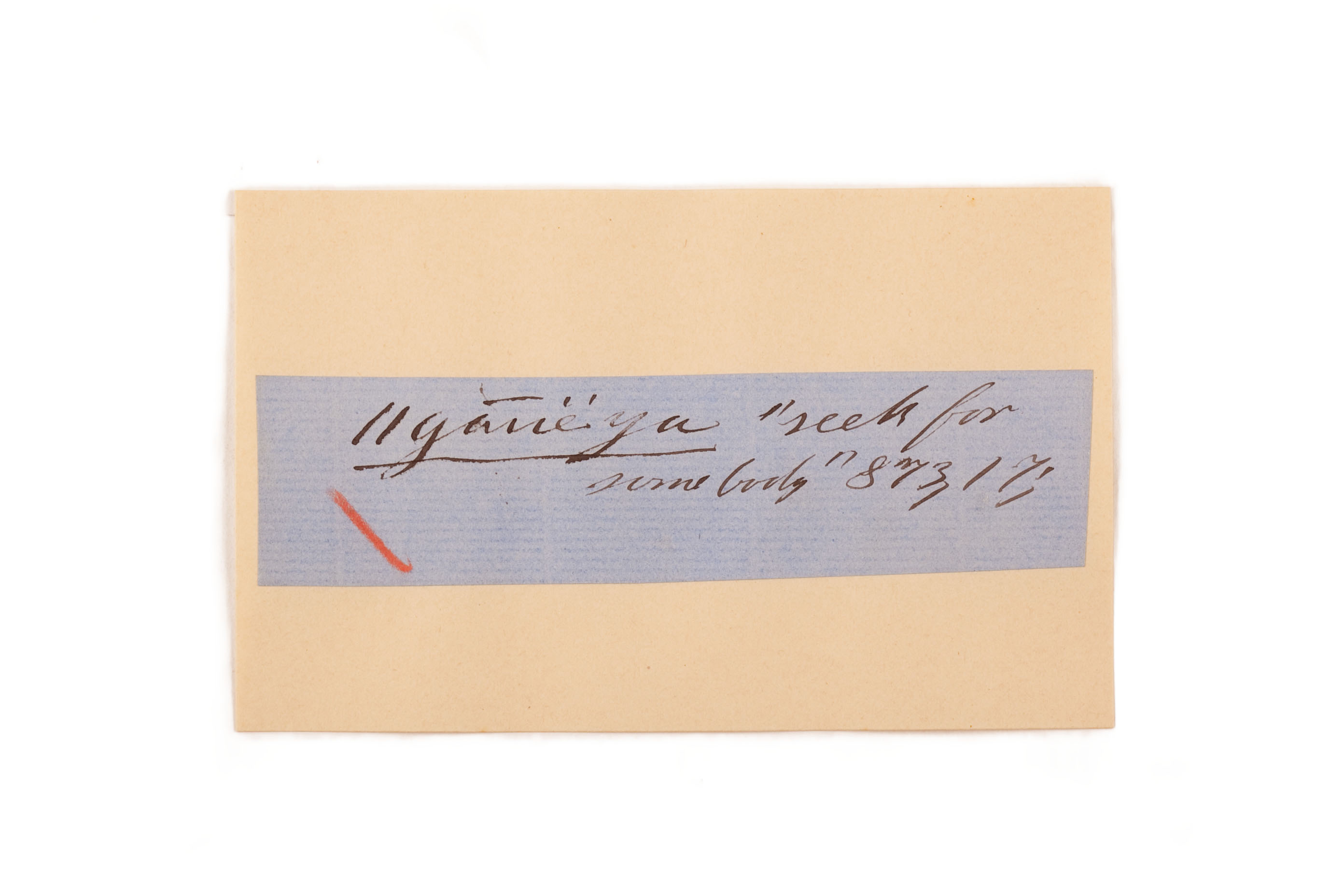 ink on blue paper glued on card