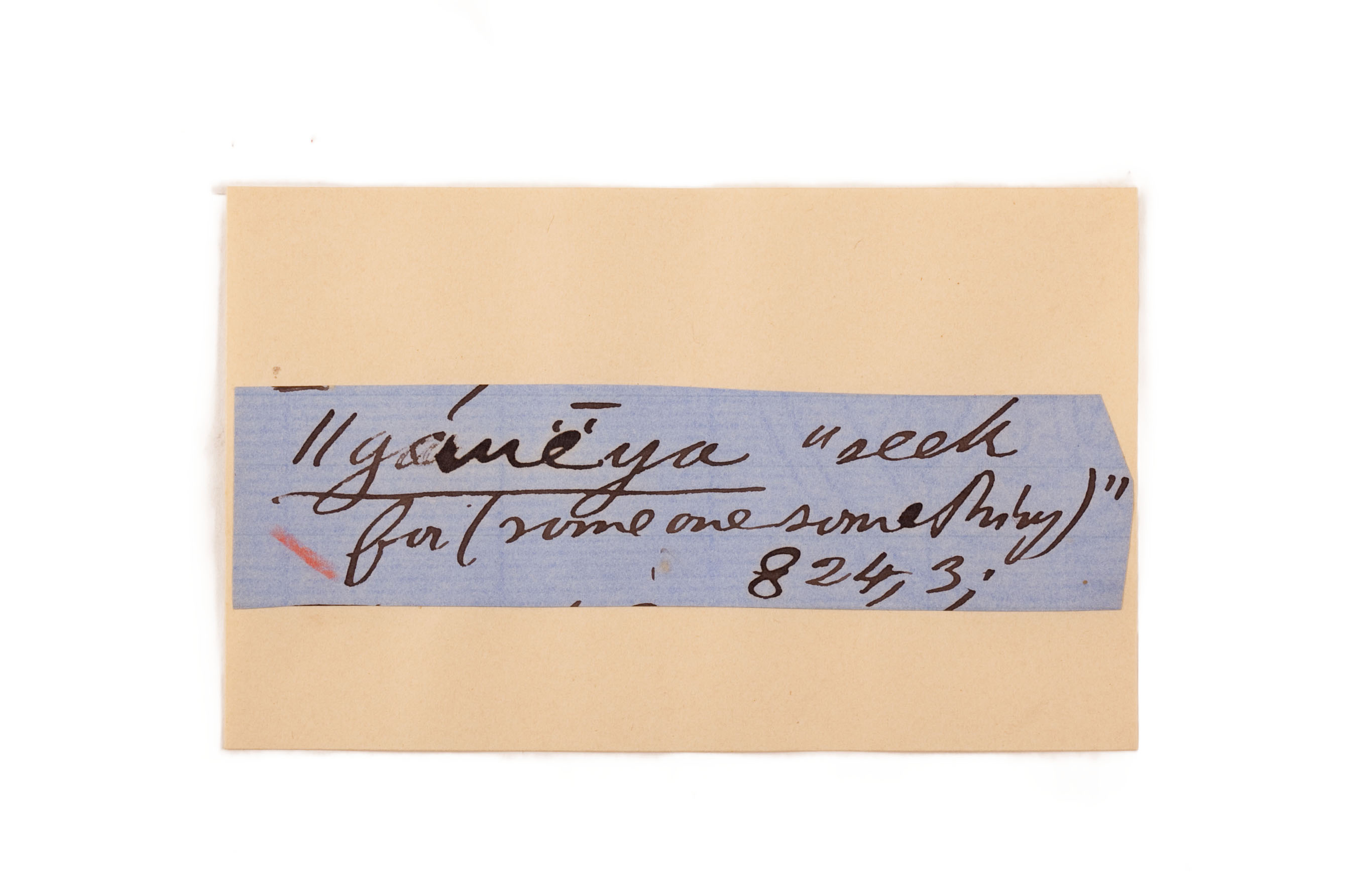 ink on blue paper glued on card