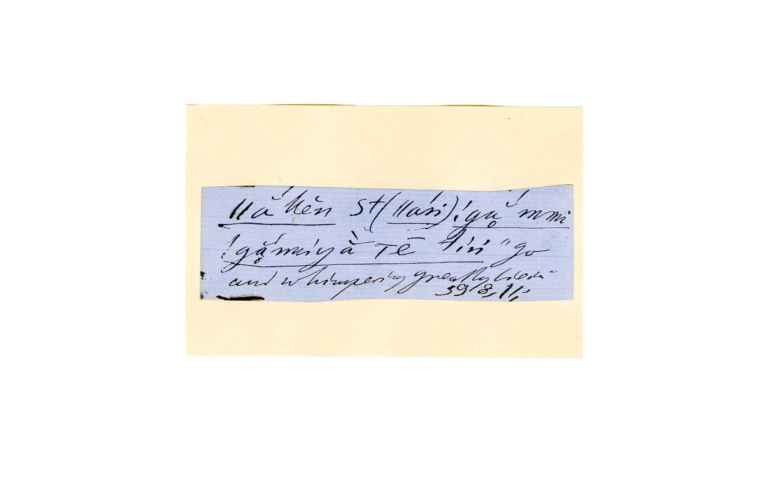 ink on blue paper glued on card