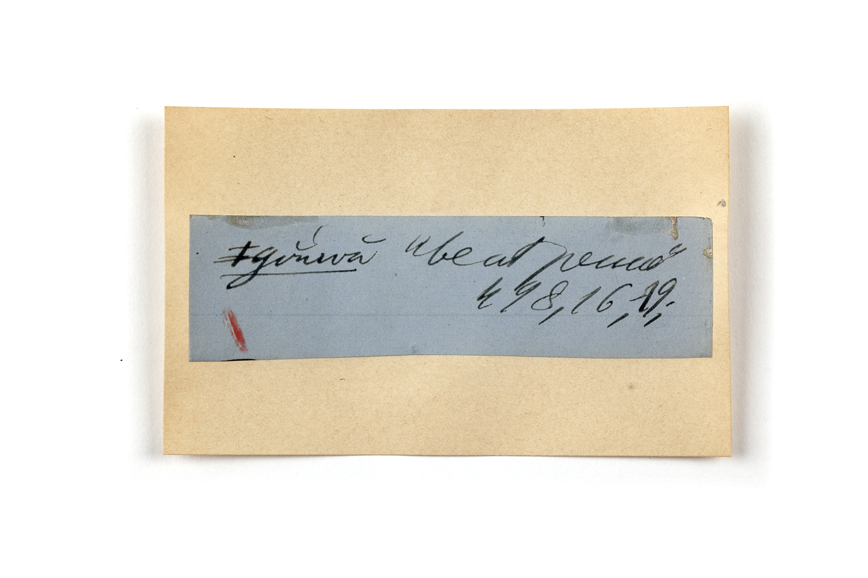 ink on blue paper glued on card