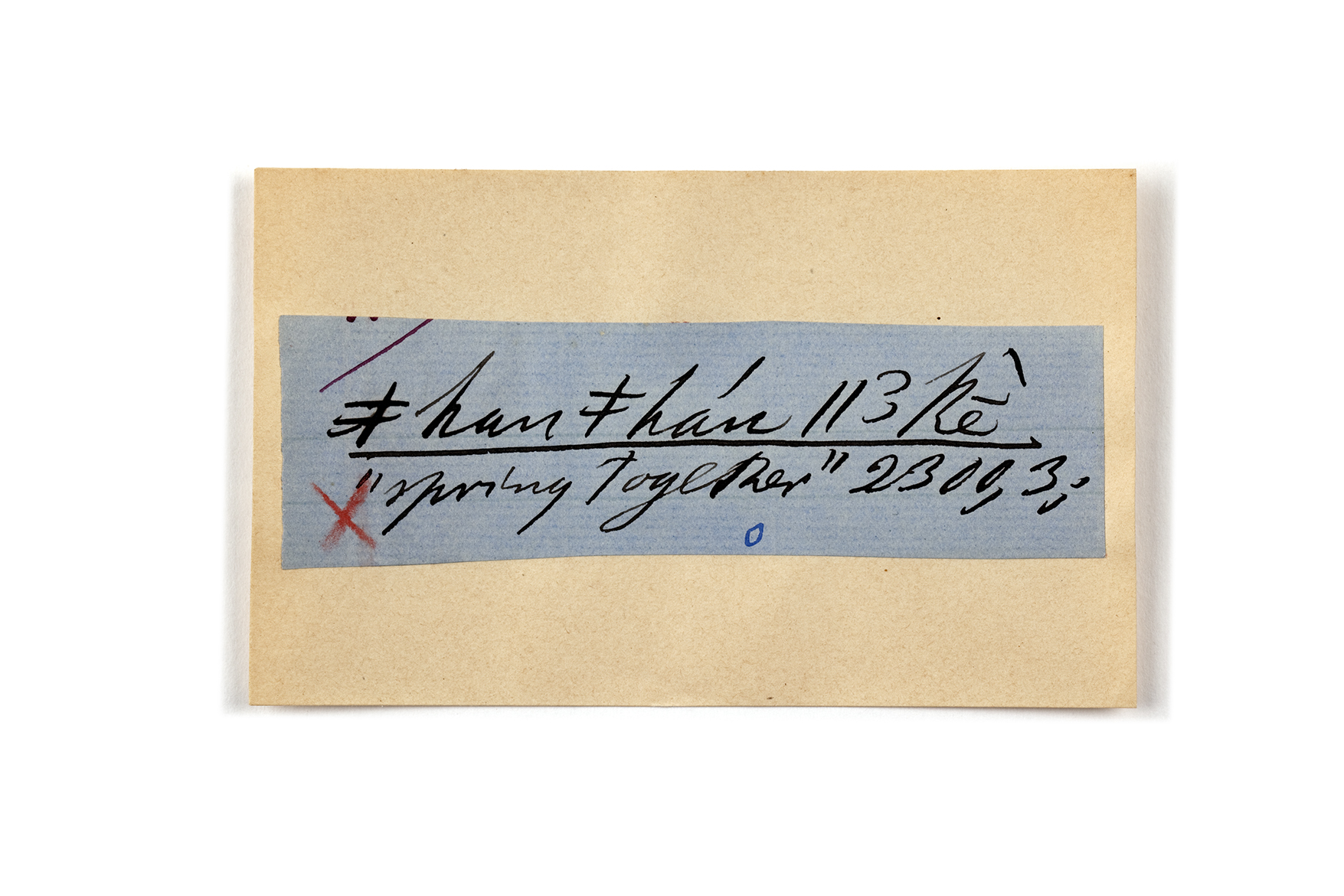 ink on blue paper glued on card