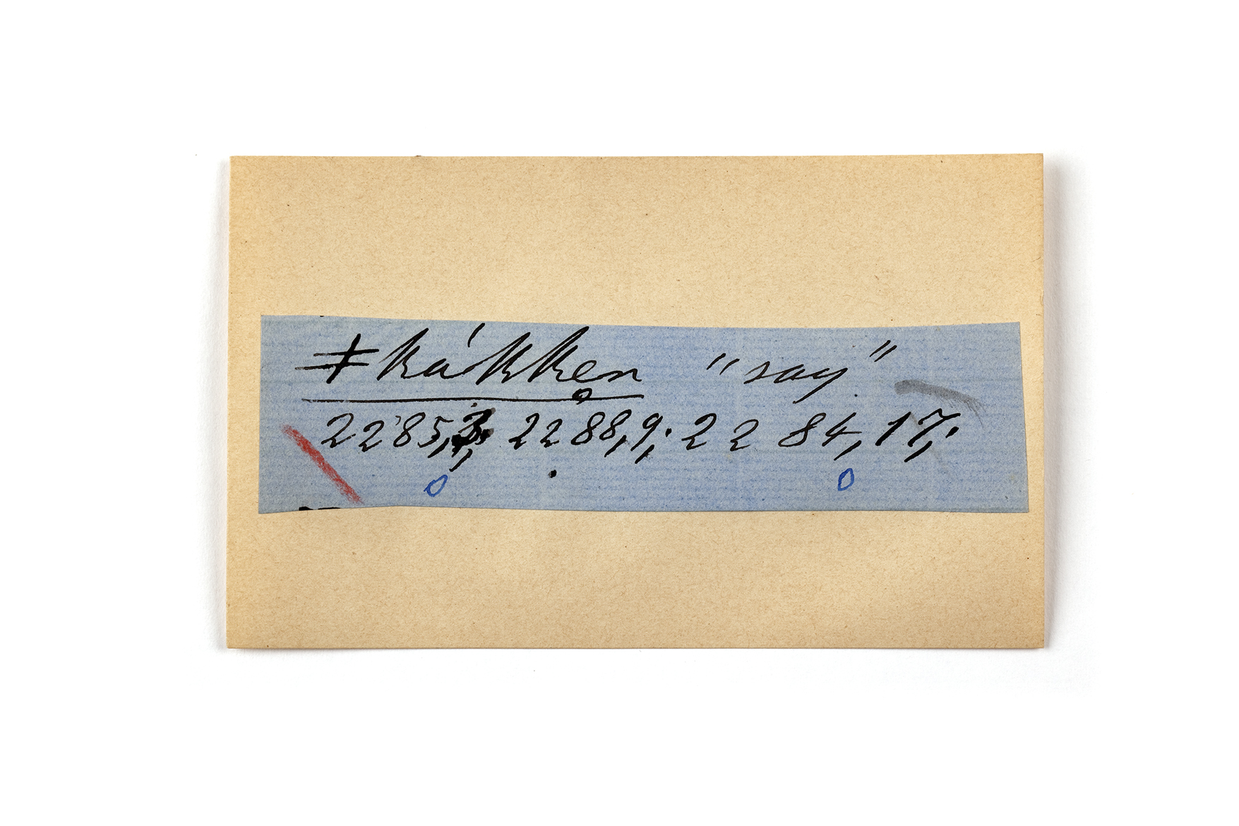 ink on blue paper glued on card