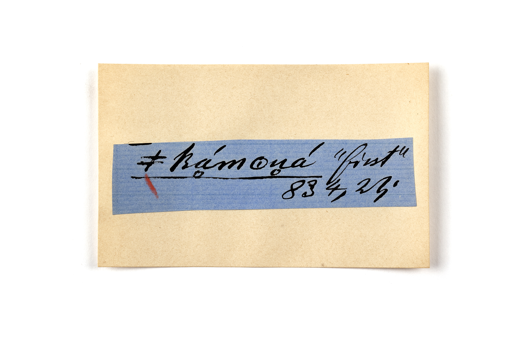 ink on blue paper glued on card