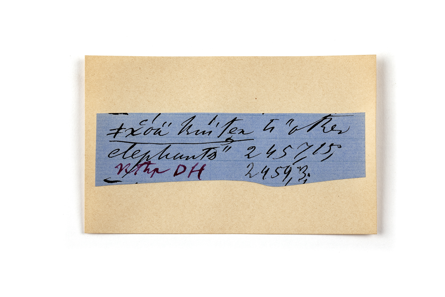 ink on blue paper glued on card
