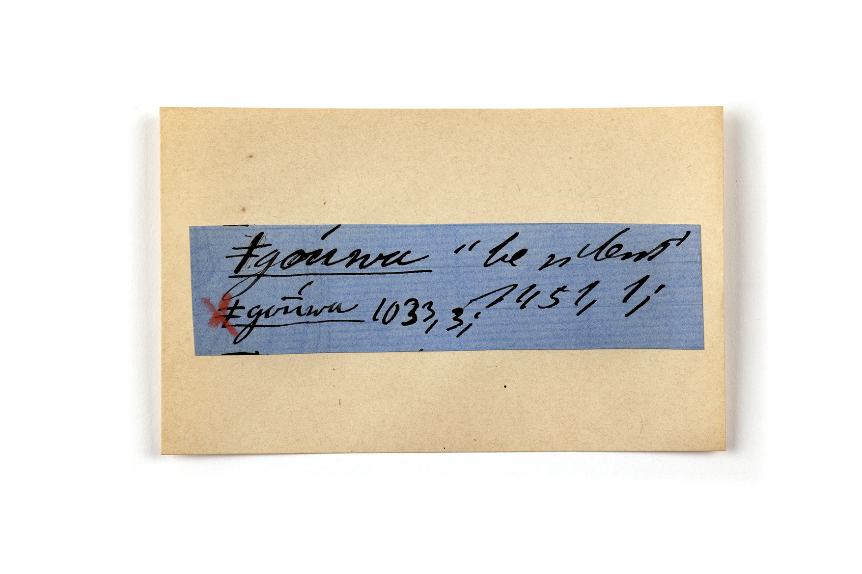 ink on blue paper glued on card