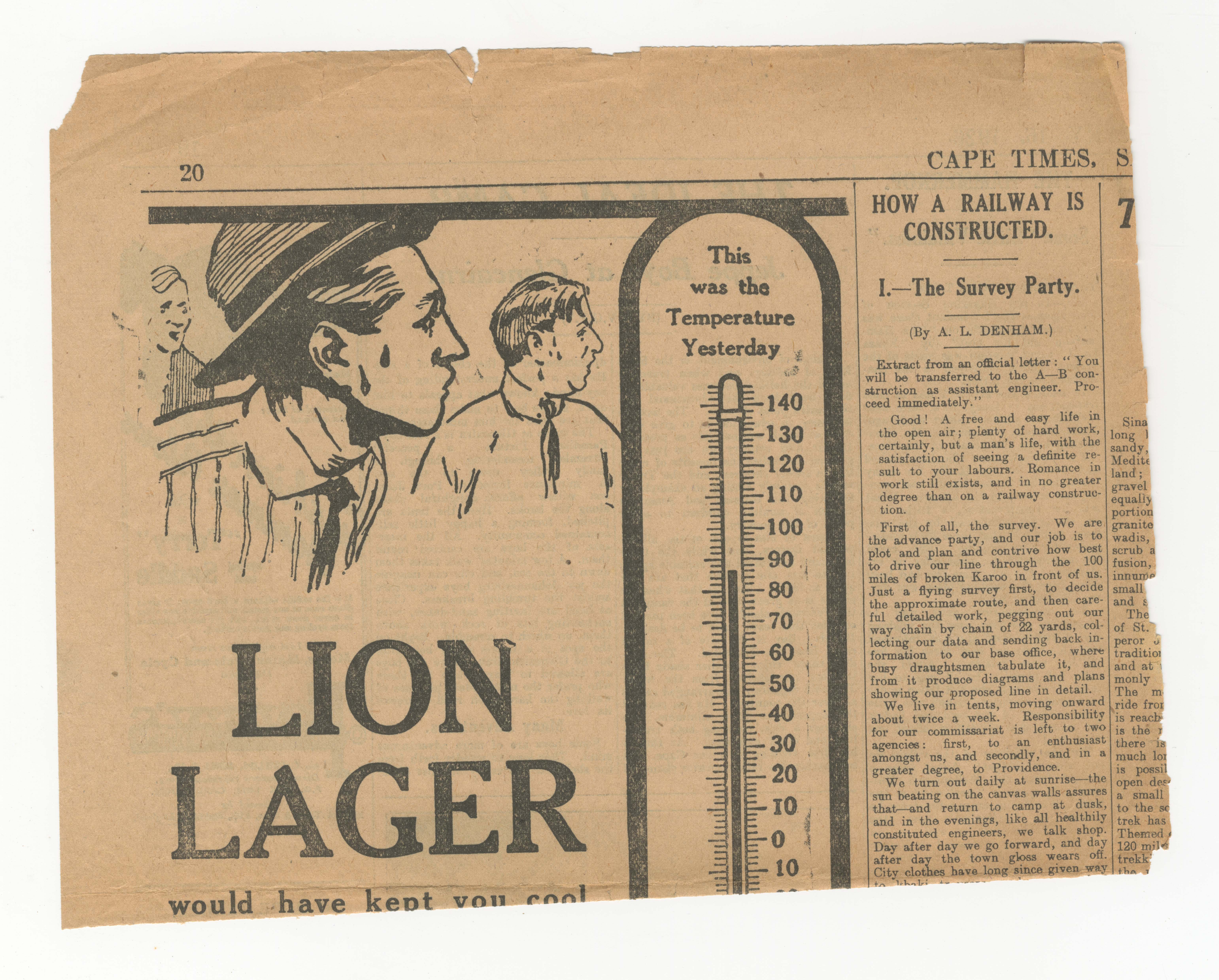 Lion Lager (an advertisement for), railway (constructing a), labour (its romanticisation)