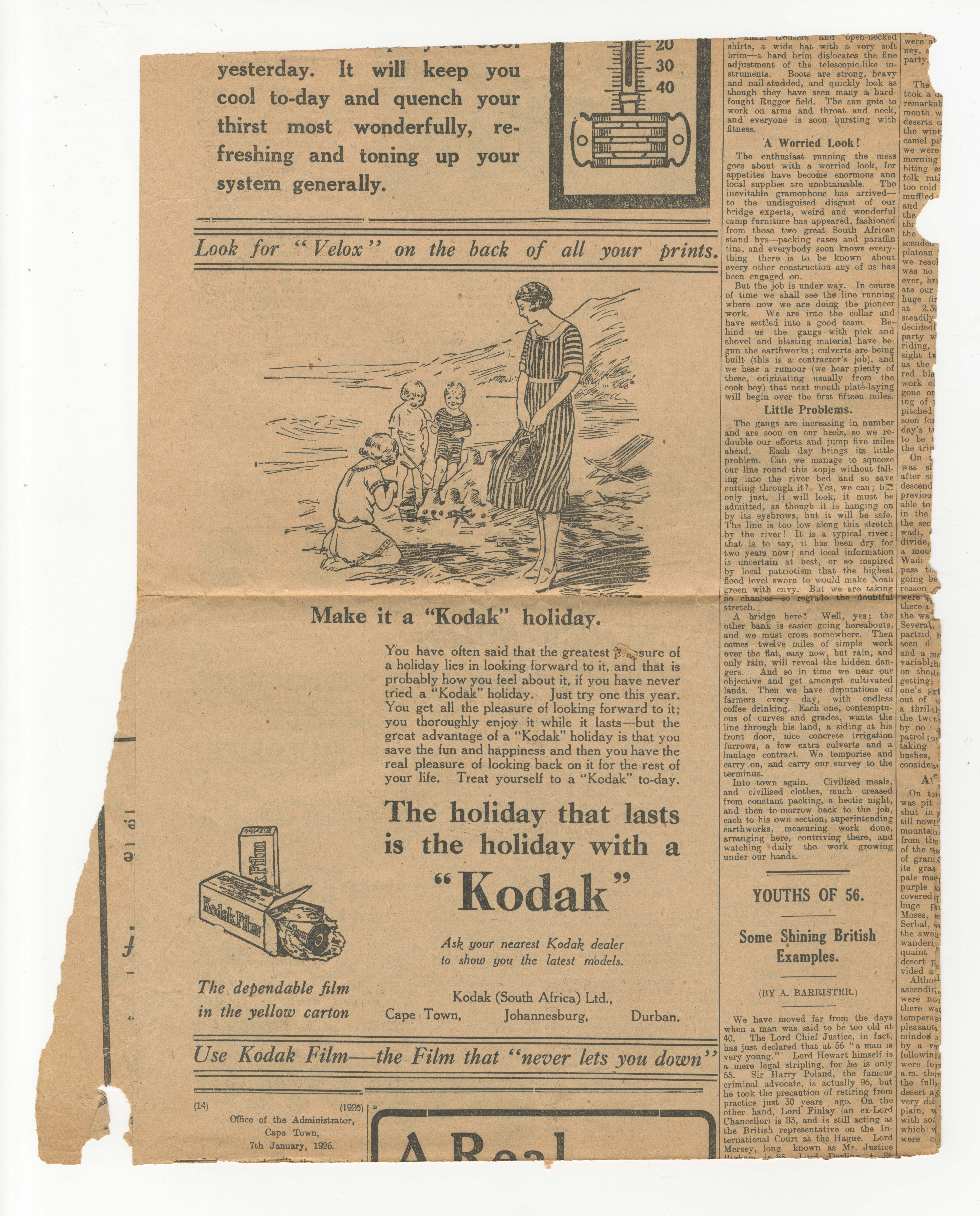 Kodak (an advertisement for), Velox (a chloride paper developed by Kodak), railway
