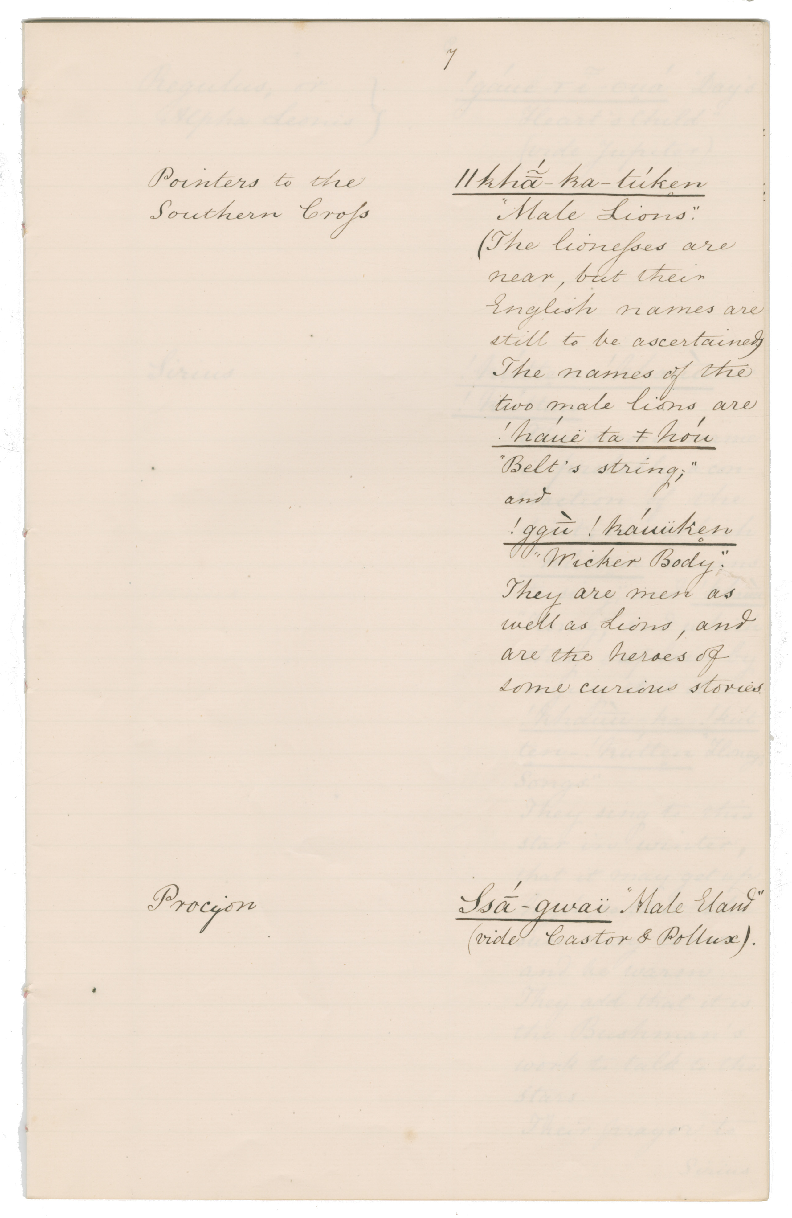 Southern Cross (pointers), male lions, belt's string, wicker body, Procyon (male eland), Castor, Pollux