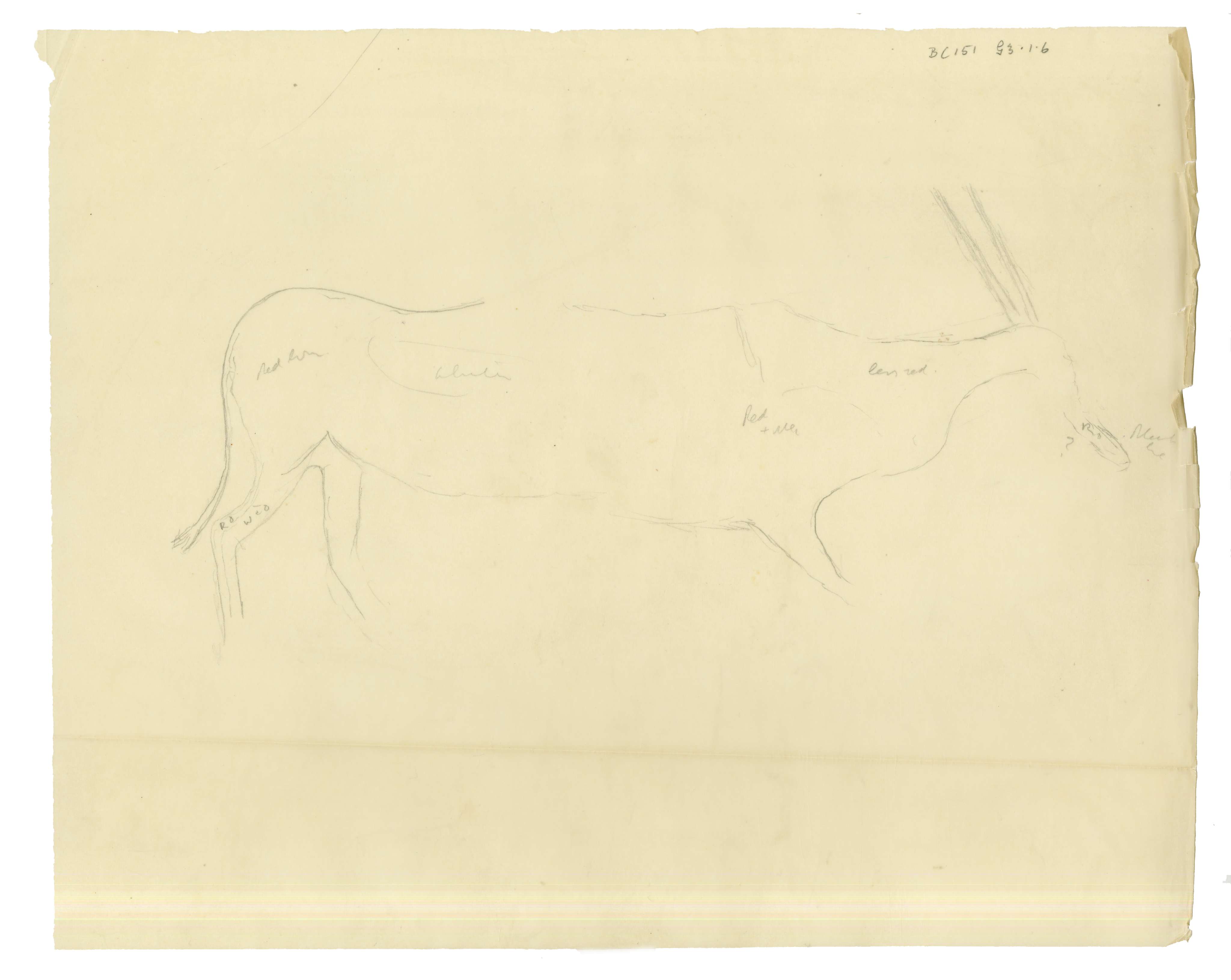 Bushman drawings, Nongolosa Valley (Keilands), Keilands, rock art (tracings of), tracings, Croxley drawing book (sketchbook), sketchbook (with notes on colour)