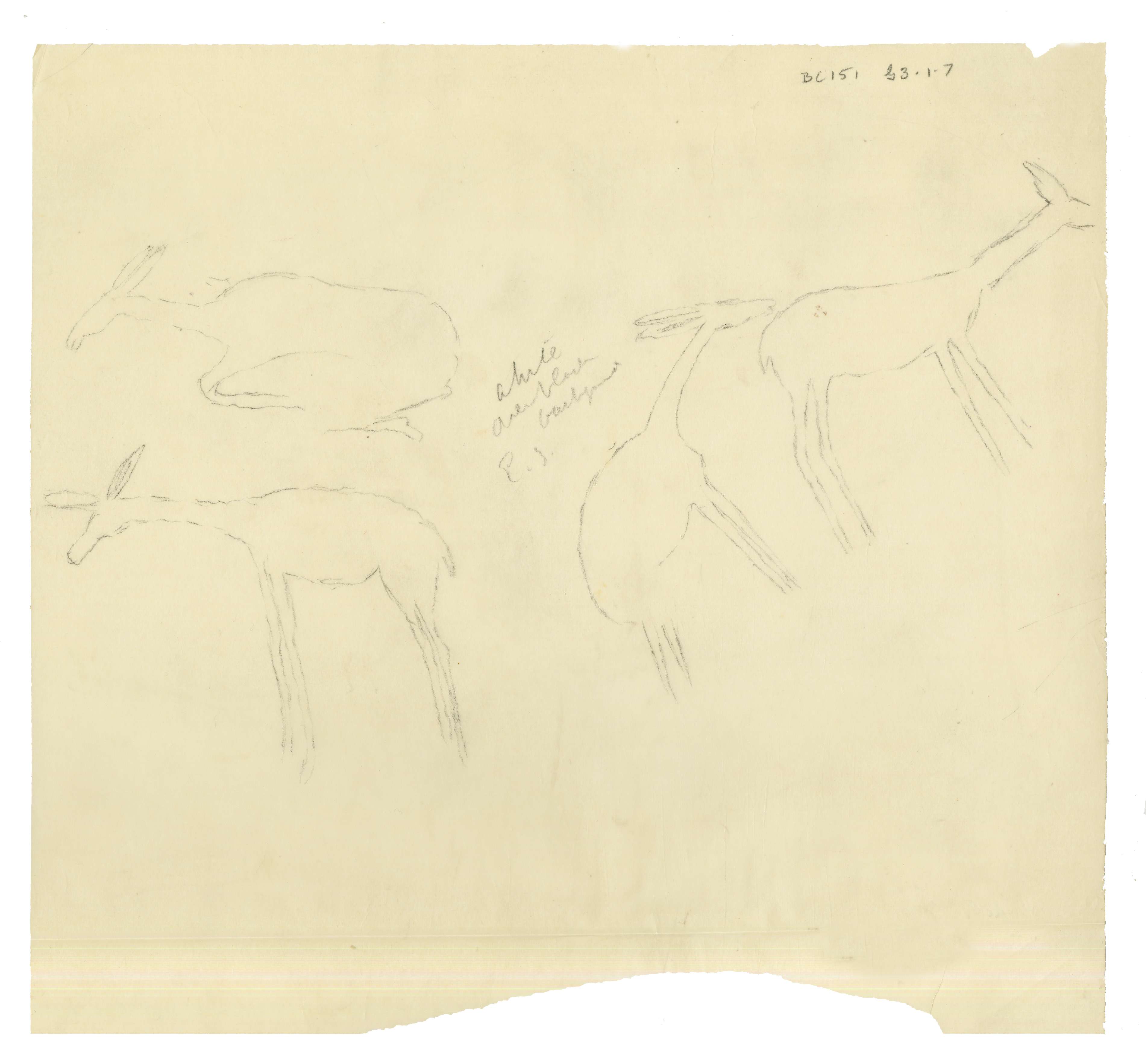 Bushman drawings, Gowa, rock art (tracings of), tracings, Croxley drawing book (sketchbook), sketchbook (with notes on colour)
