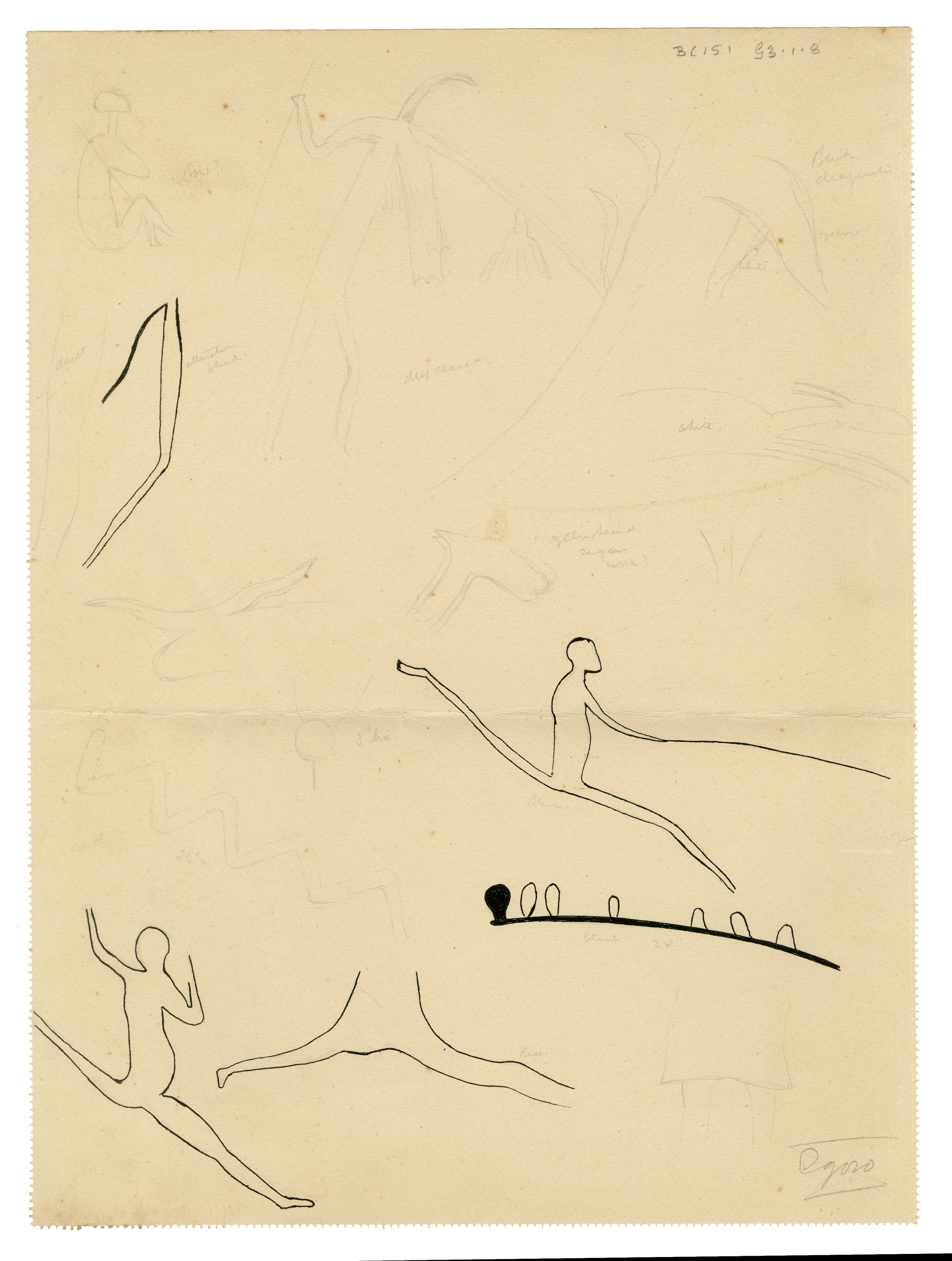 Rock art tracings (Bushman paintings in Transkei), Transkei (rock art from), Croxley drawing book (sketchbook), sketchbook (with notes on colour)