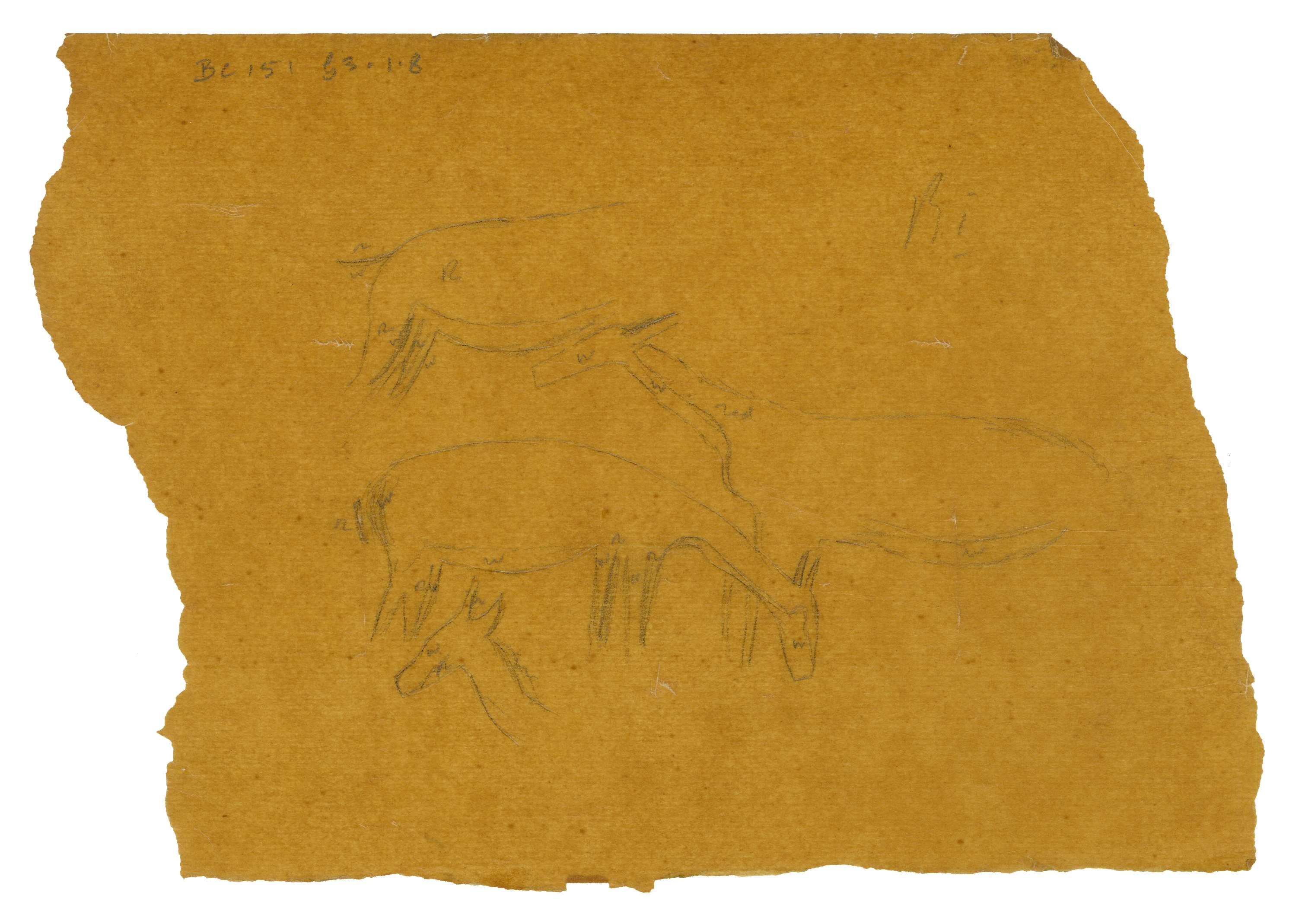 Rock art tracings (Bushman paintings in Transkei), Transkei (rock art from), Croxley drawing book (sketchbook), sketchbook (with notes on colour)