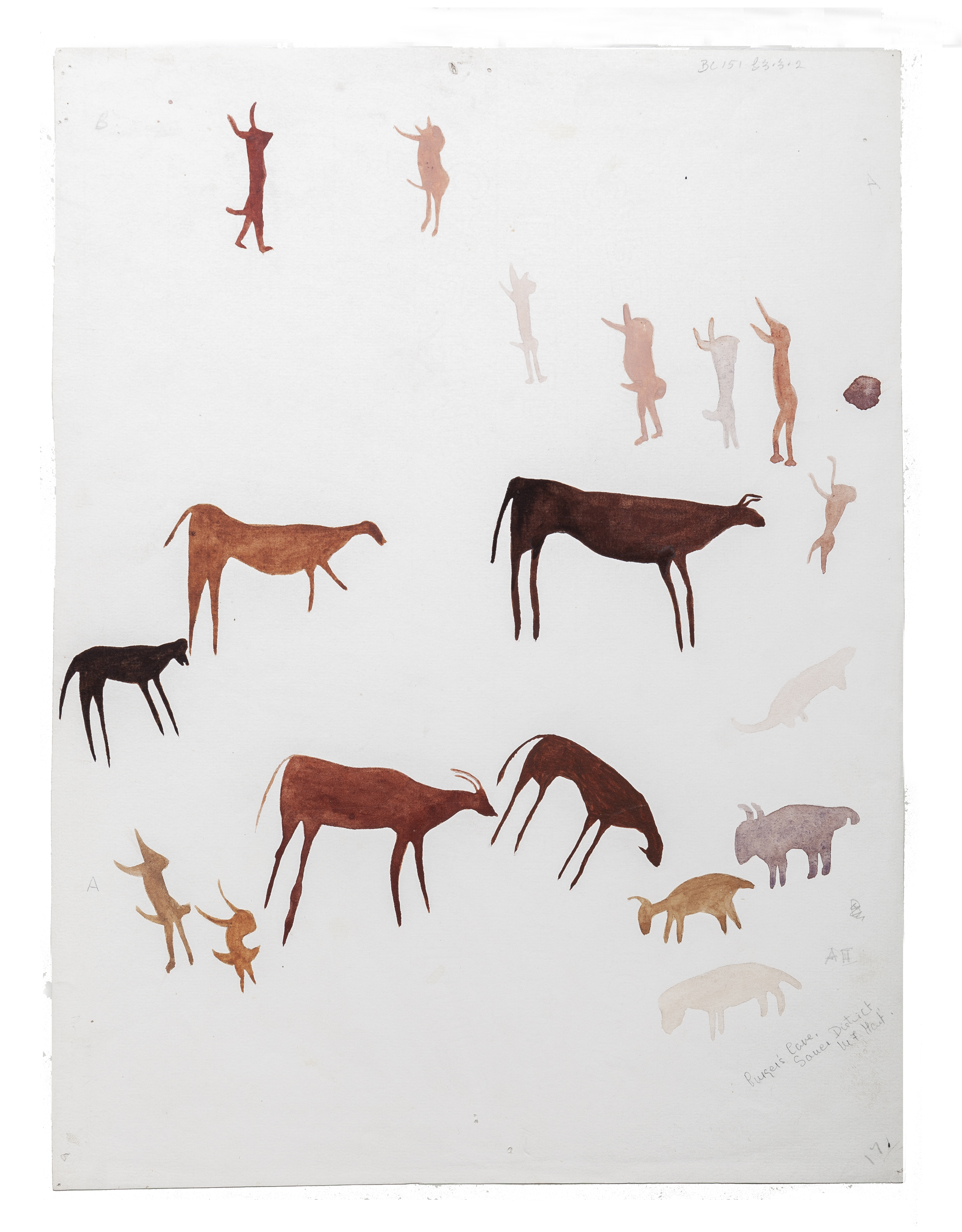 Copies of rock art (A2), Burger's Cave, Sauer District. The paper is watermarked 'CAPE TIMES LIMITED CAPE TOWN'.