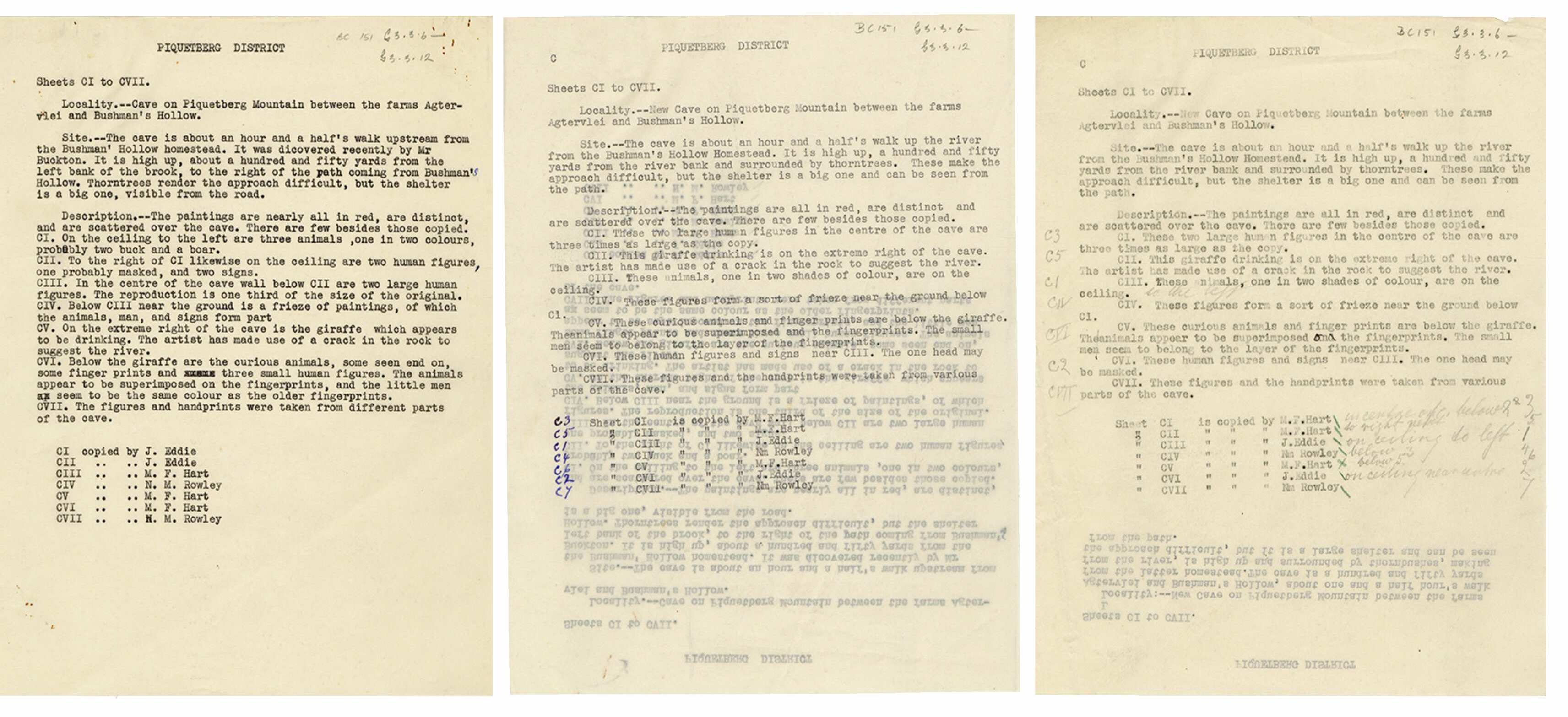 G3.3.6-12: [Notes, C1-7, on copies of Bushman paintings (Eddie, Rowley, Hart)]