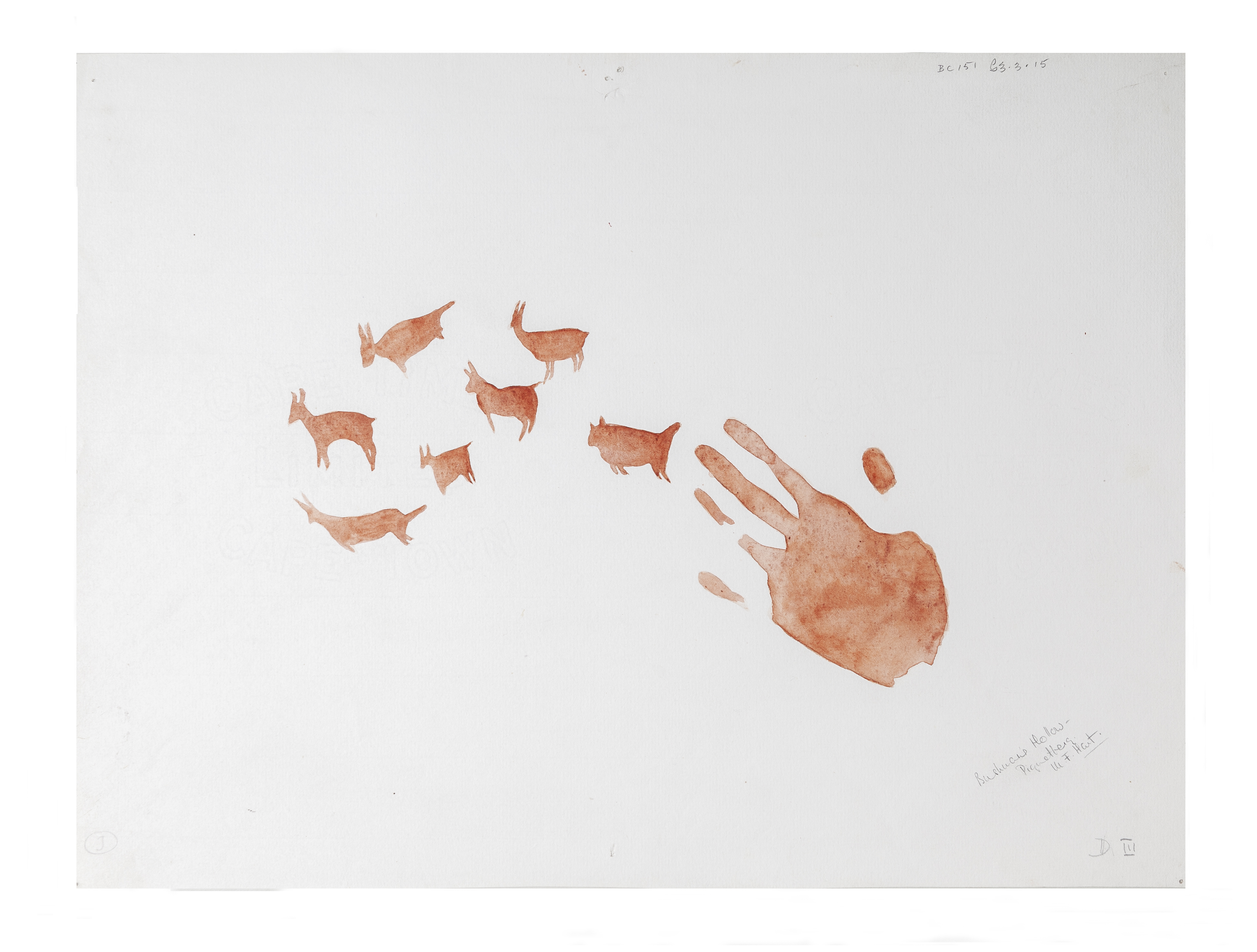 Copy of rock art (D3), Bushman's Hollow, Piquetberg. The paper is watermarked 'CAPE TIMES LIMITED CAPE TOWN'.
