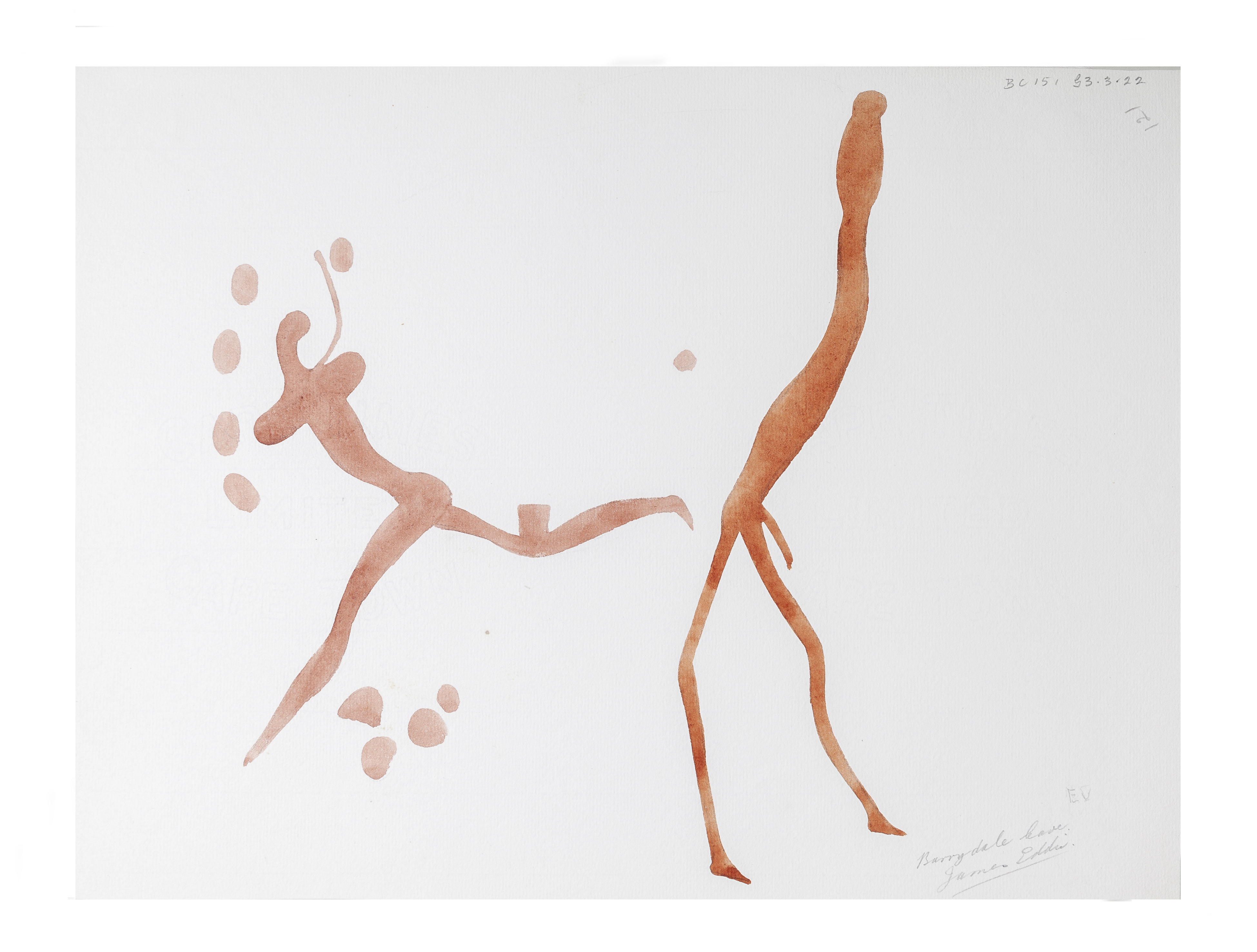 Copy of rock art (E5), Barrydale Cave. The paper is watermarked 'CAPE TIMES LIMITED CAPE TOWN'.