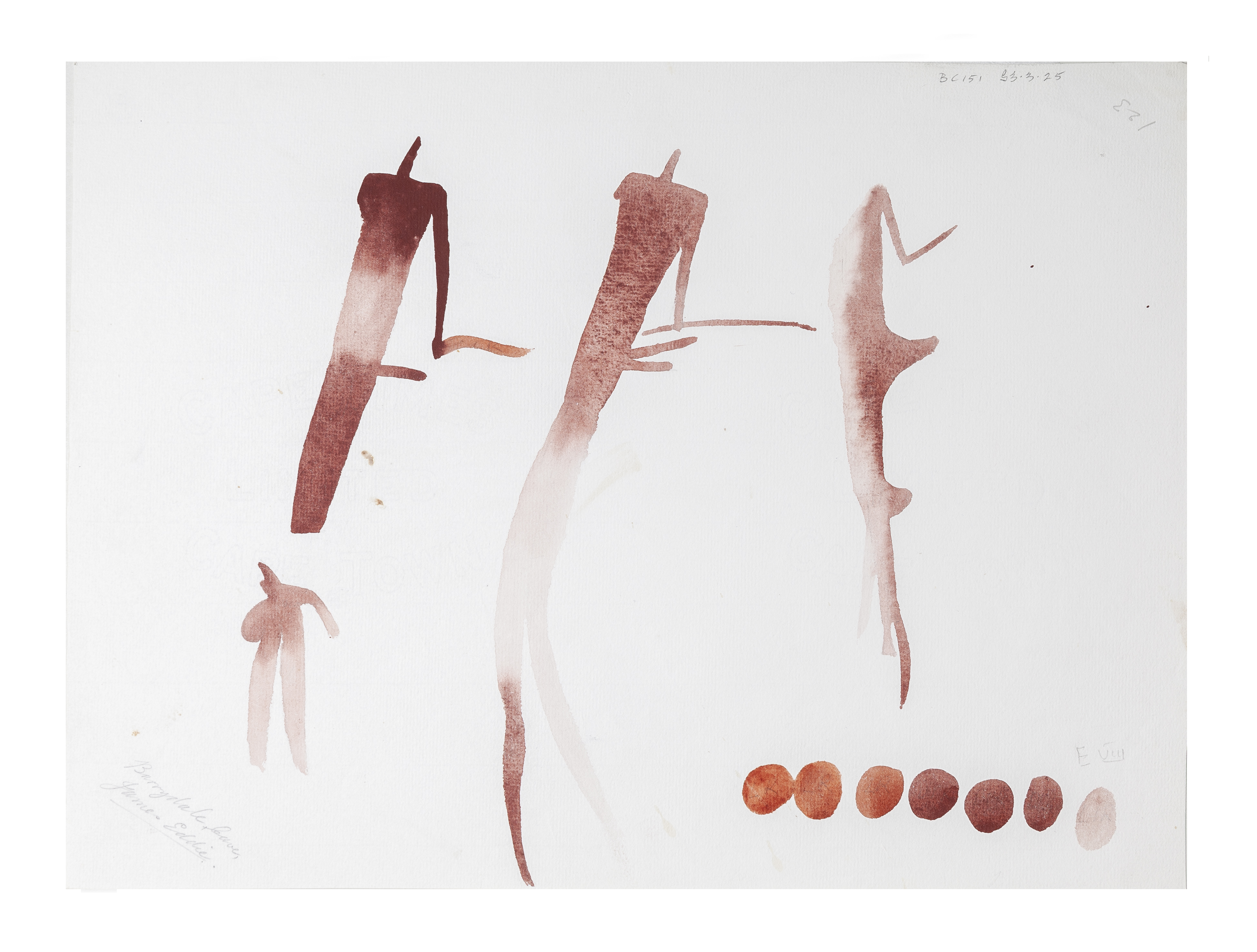 Copy of rock art (E8), Barrydale Cave. The paper is watermarked 'CAPE TIMES LIMITED CAPE TOWN'.