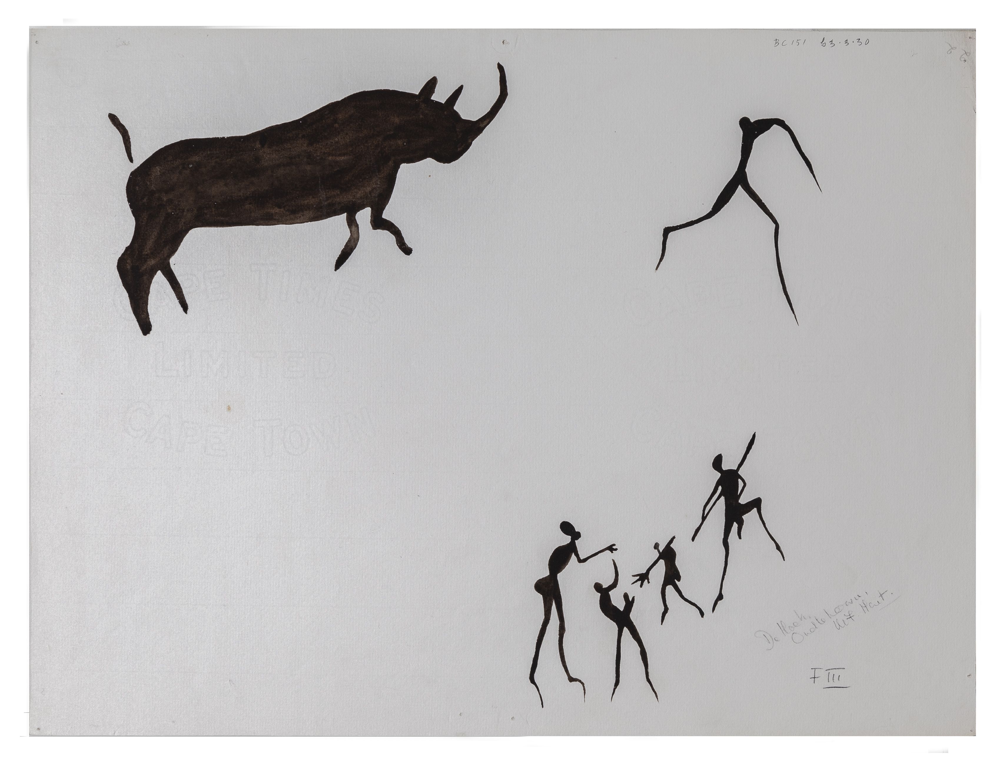 Copy of rock art (F3), De Hoek, Oudtshoorn. The paper is watermarked 'CAPE TIMES LIMITED CAPE TOWN'.