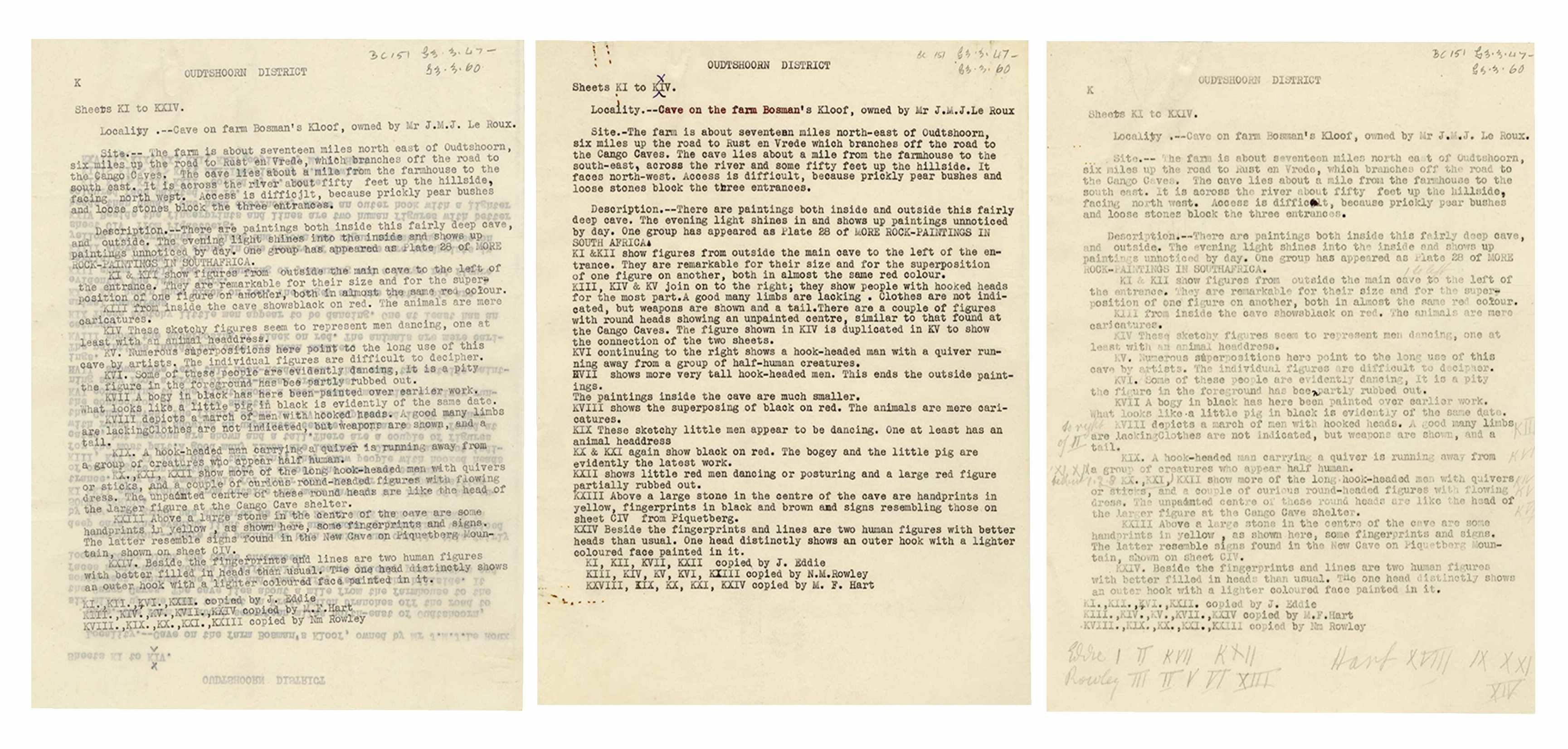 G3.3.47-60: [Notes, K1-14, on copies of Bushman paintings (Eddie, Rowley, Hart)]
