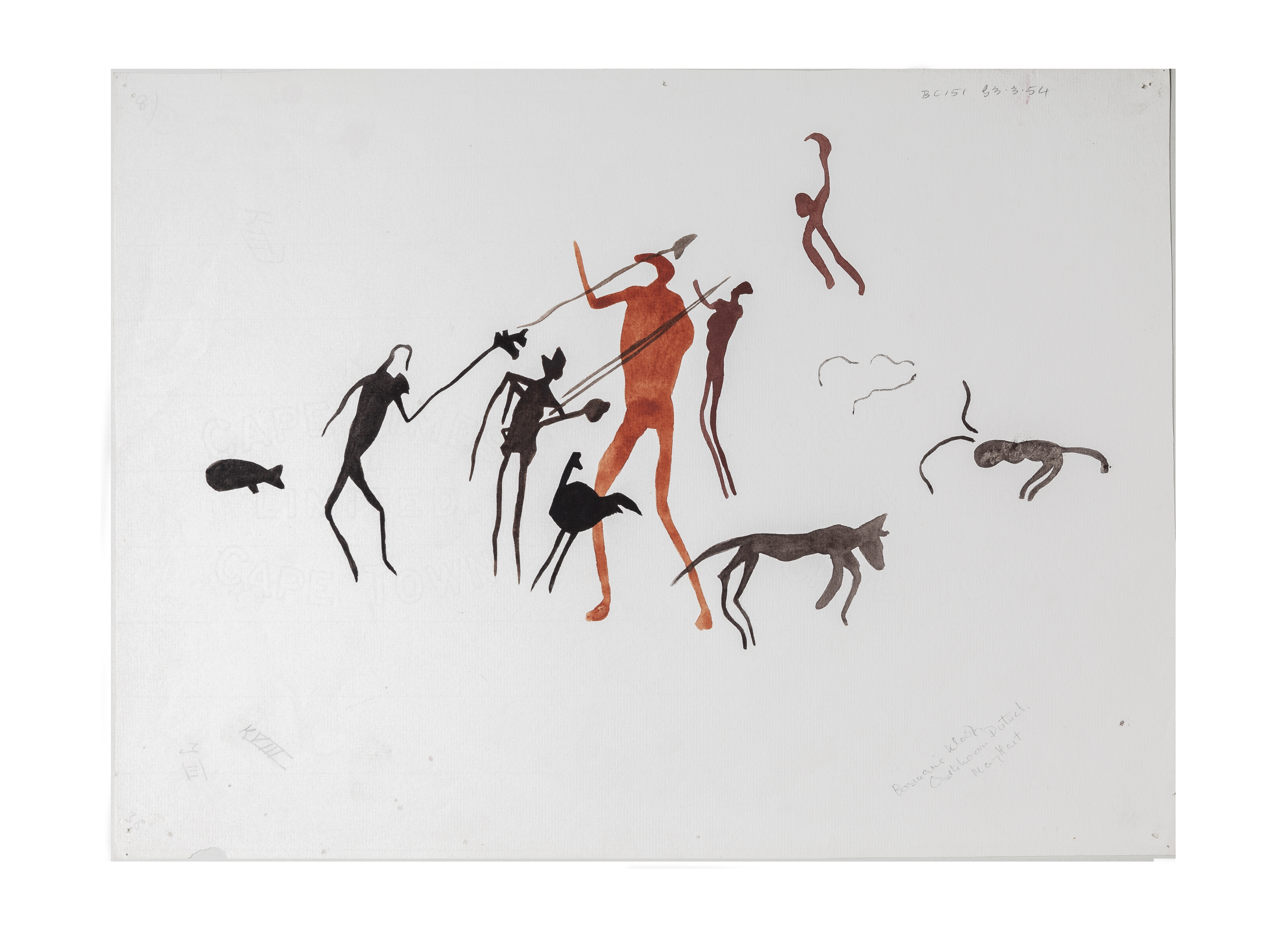 Copy of rock art (K8), Bosman's Kloof, Oudtshoorn. The paper is watermarked 'CAPE TIMES LIMITED CAPE TOWN'.