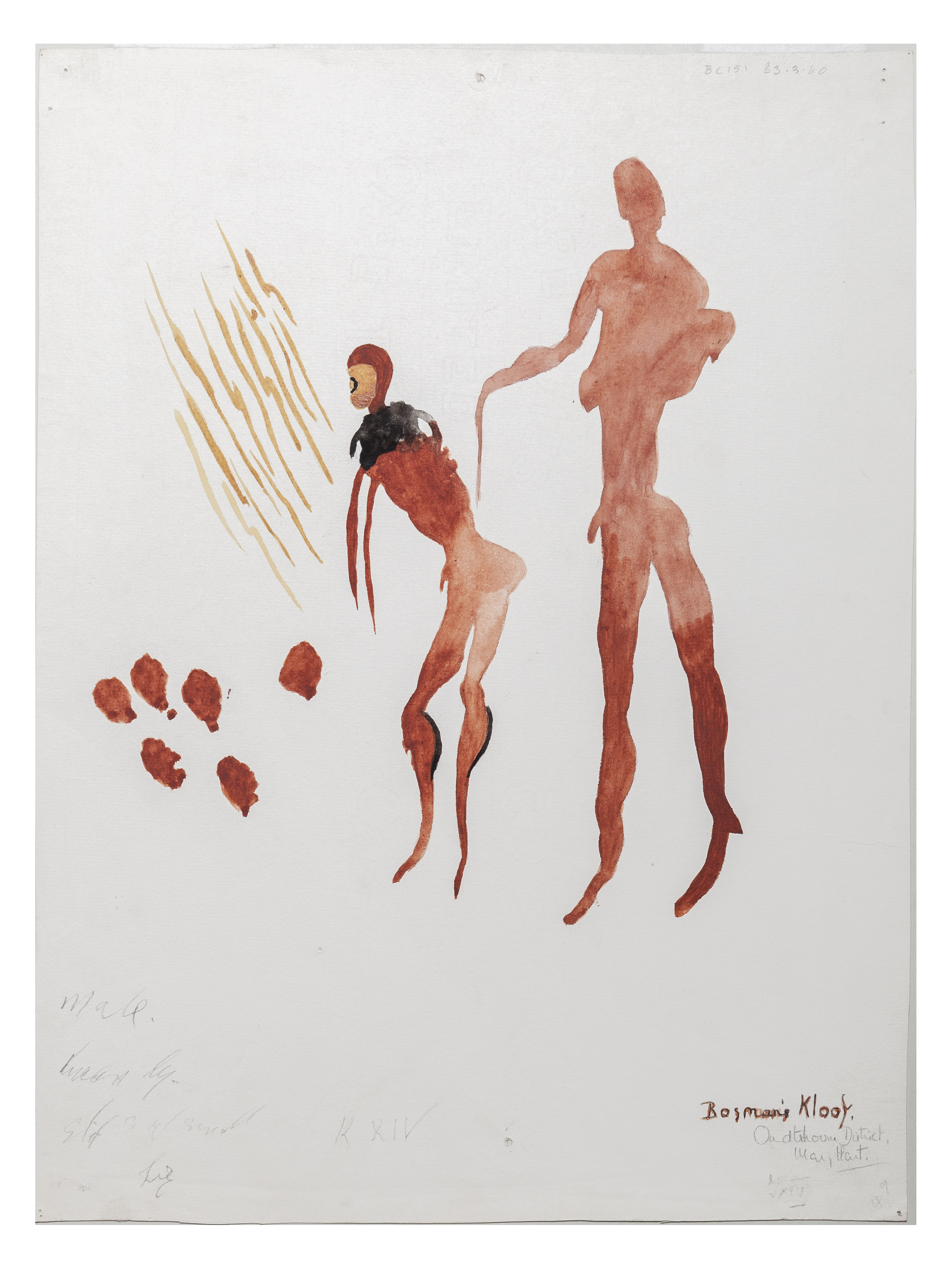 Copy of rock art (K14) (Mary Hart), Bosman's Kloof, Cango. The paper is watermarked 'CAPE TIMES LIMITED CAPE TOWN'.