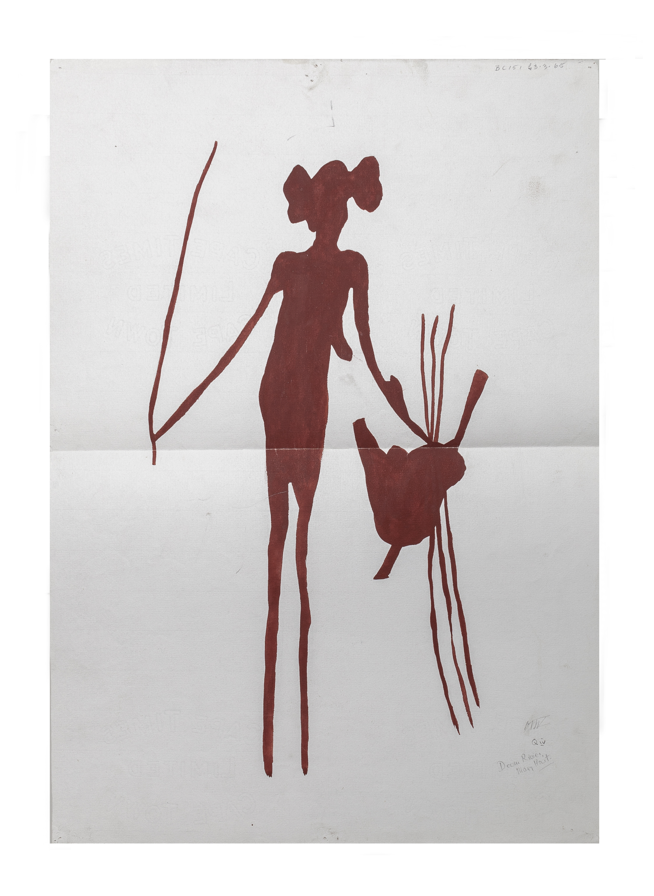 Copy of rock art (M4), Doorn River, George. The paper is watermarked 'CAPE TIMES LIMITED CAPE TOWN'.