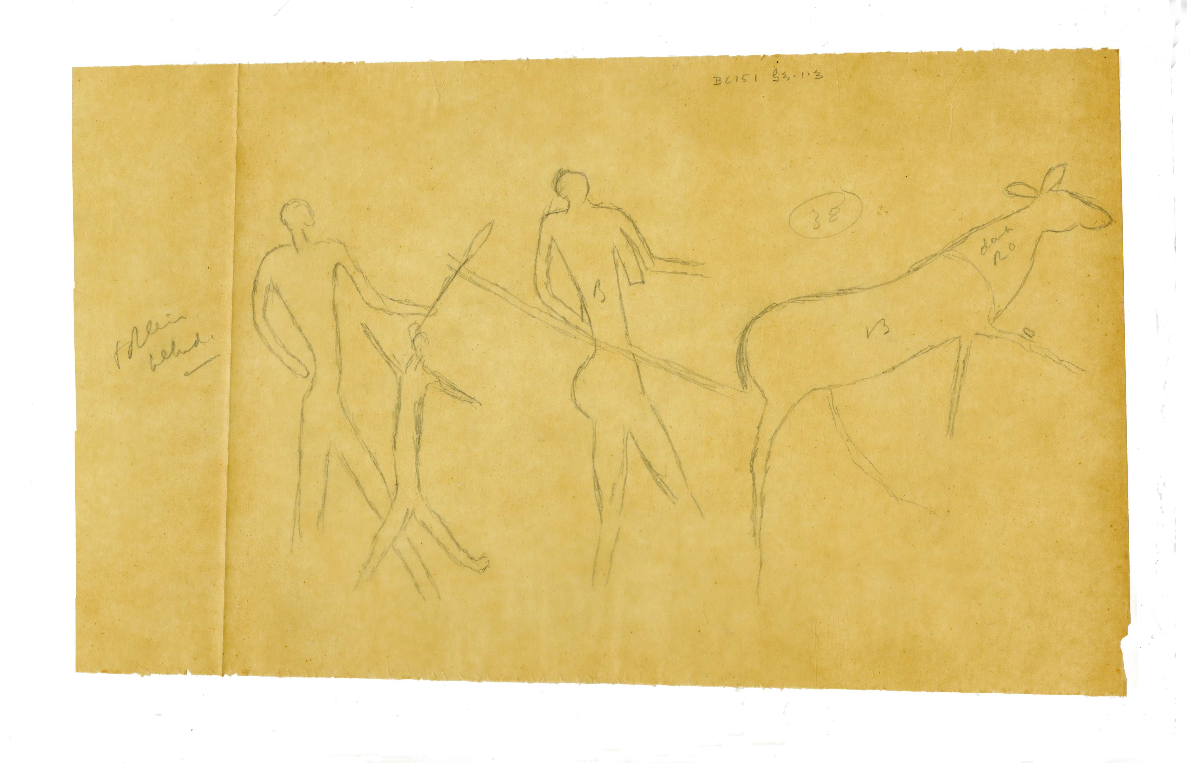 Bushman drawings, Egoso, rock art (tracings of), Croxley drawing book (sketchbook), sketchbook (with notes on colour)