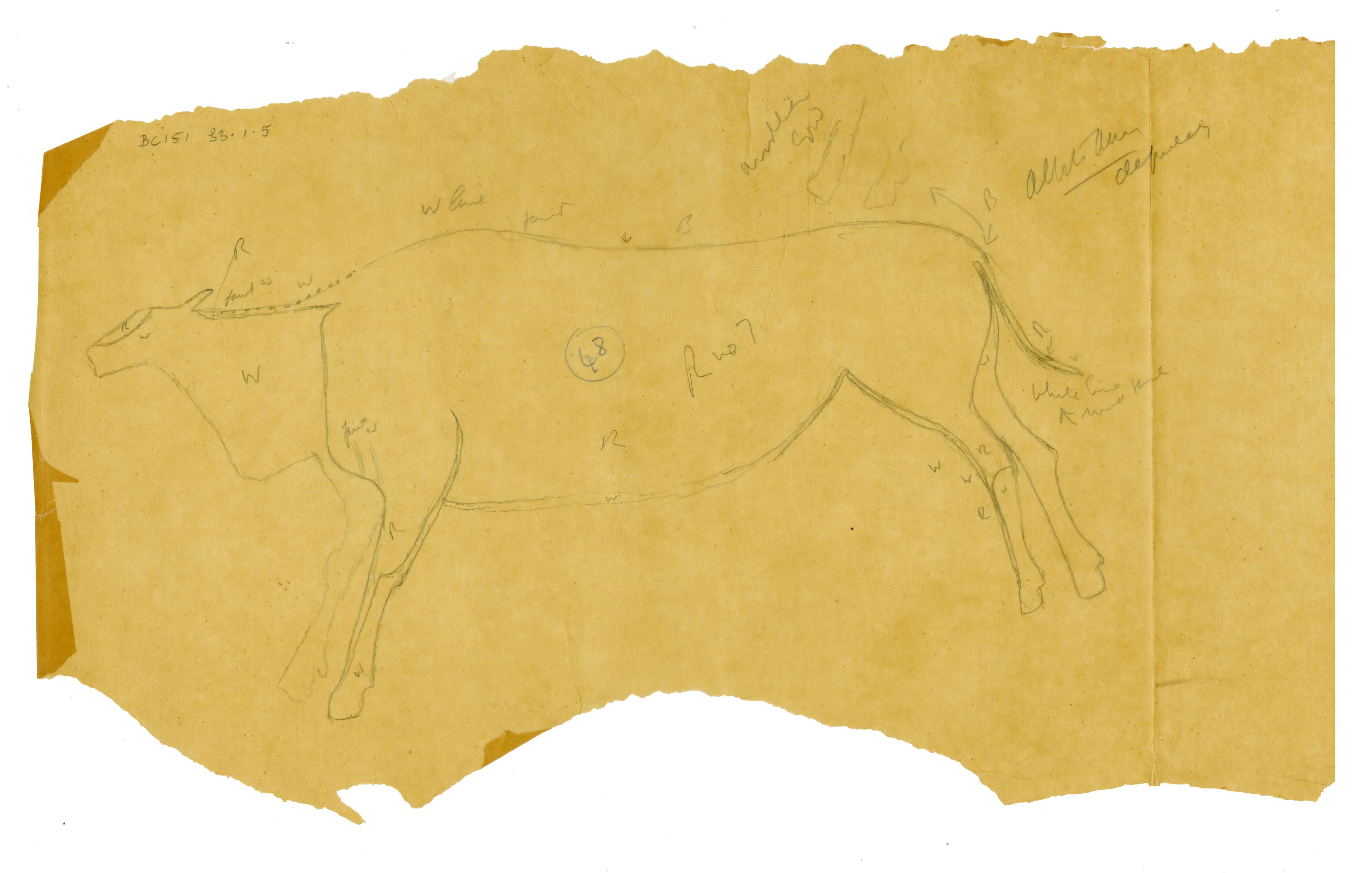 Bushman drawings, Aliwal North Area, rock art (tracings of), tracings, Croxley drawing book (sketchbook), sketchbook (with notes on colour)
