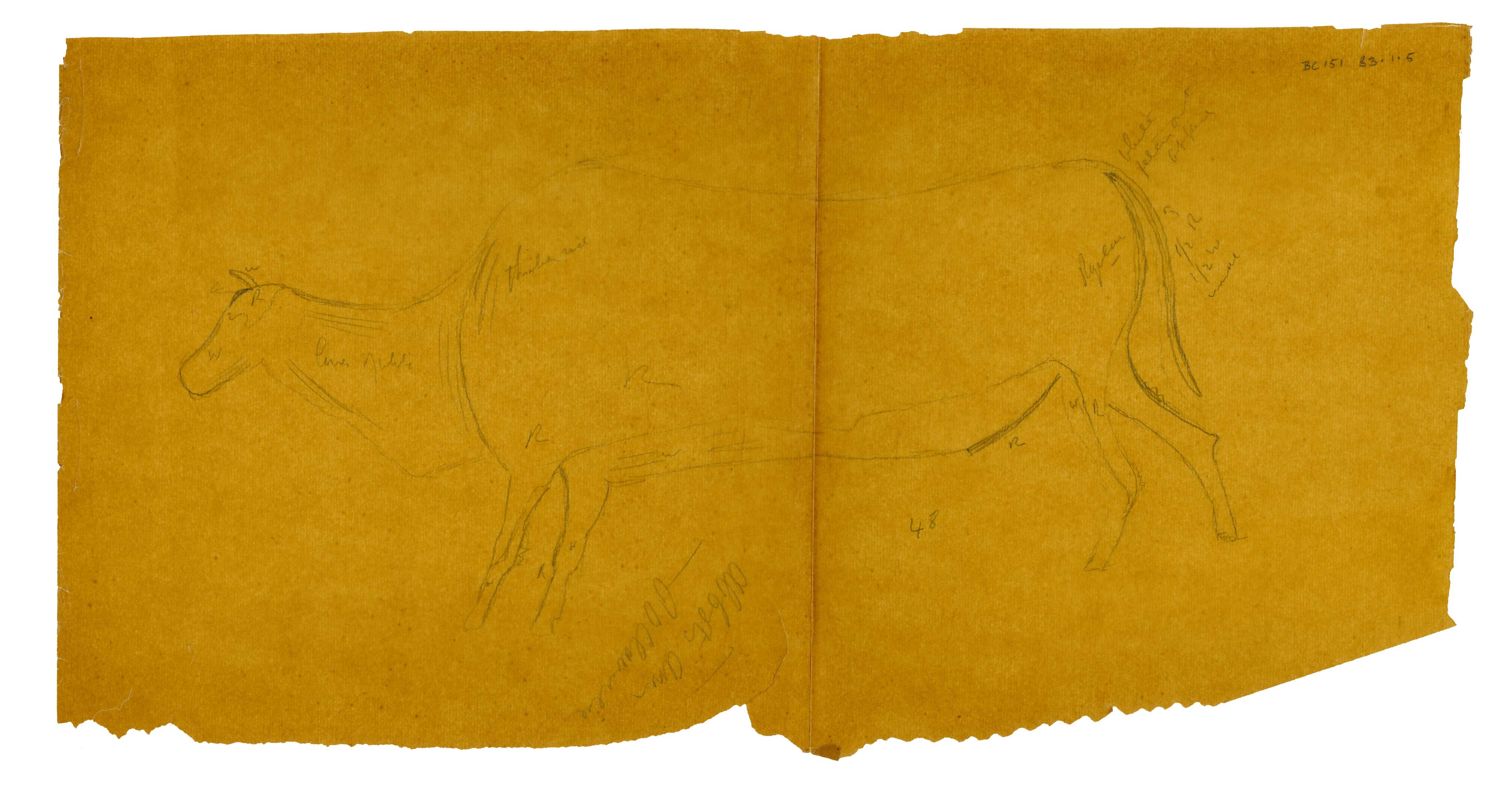 Bushman drawings, Aliwal North Area, rock art (tracings of), tracings, Croxley drawing book (sketchbook), sketchbook (with notes on colour)