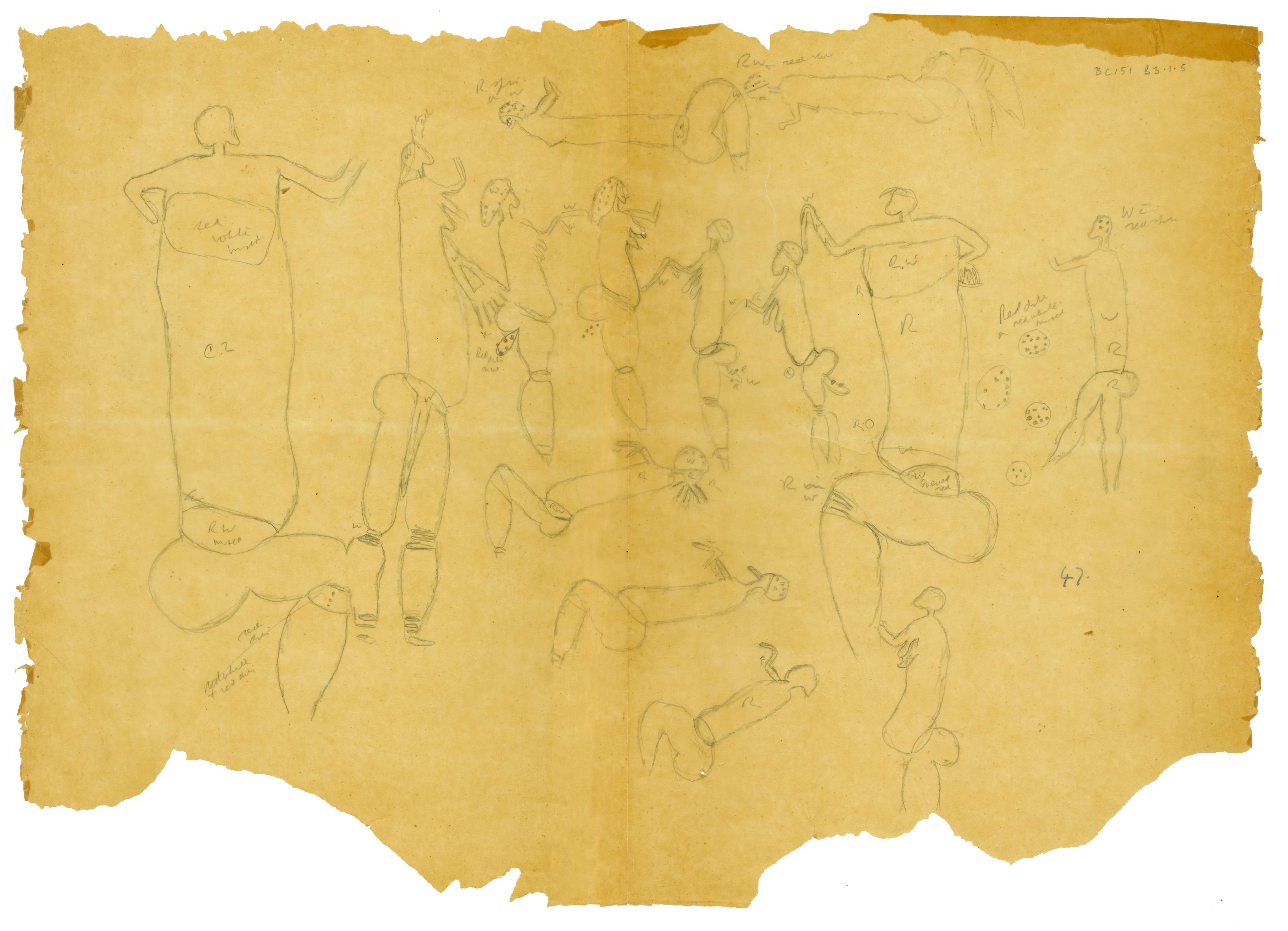 Bushman drawings, Aliwal North Area, rock art (tracings of), tracings, Croxley drawing book (sketchbook), sketchbook (with notes on colour)