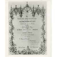 certificates and other records (concerning WHI Bleek), German Oriental Society, membership diploma, Wilhelm Bleek's