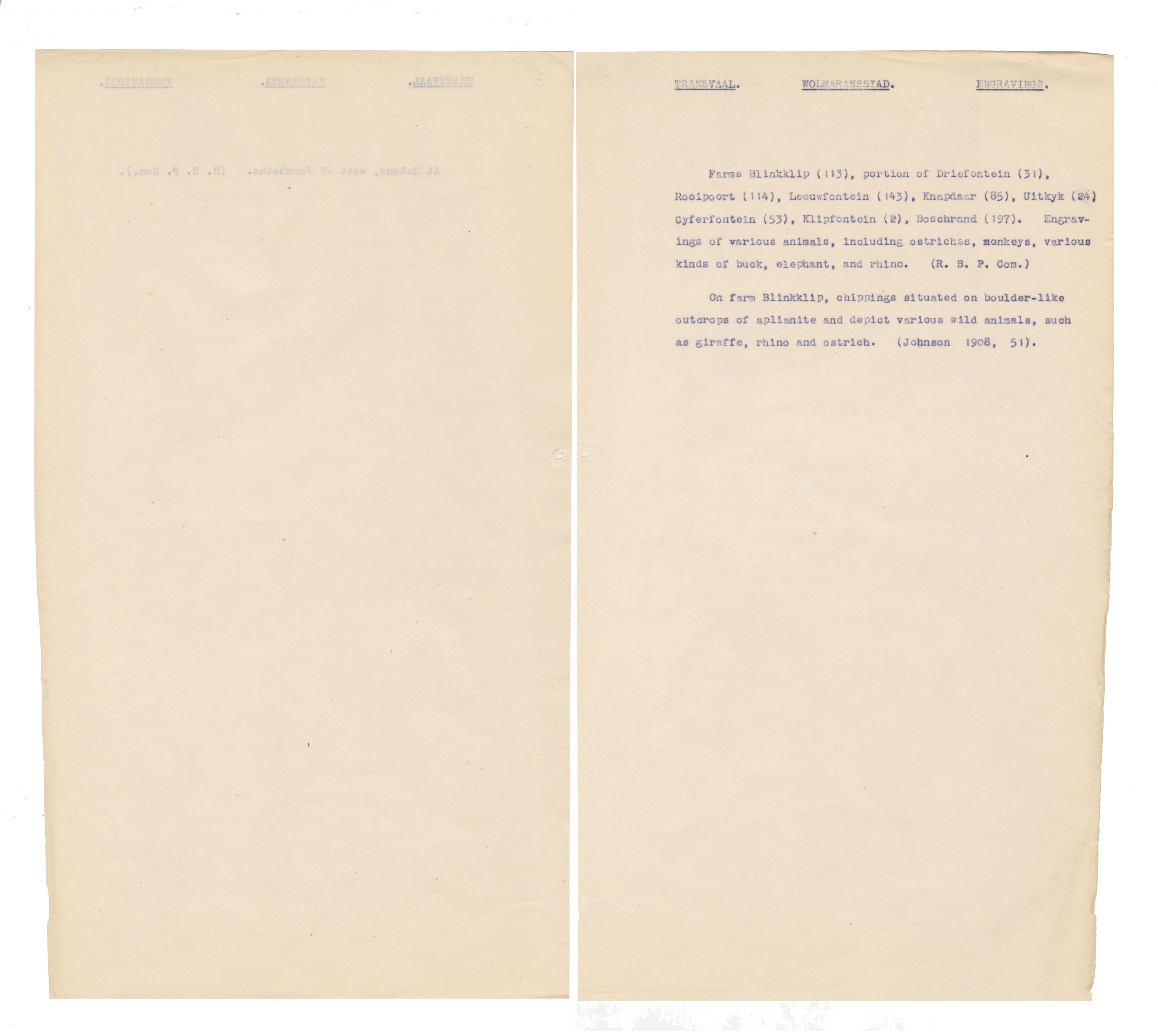 Typewritten notes (facsimiles?) on sheer paper about southern African rock engravings.