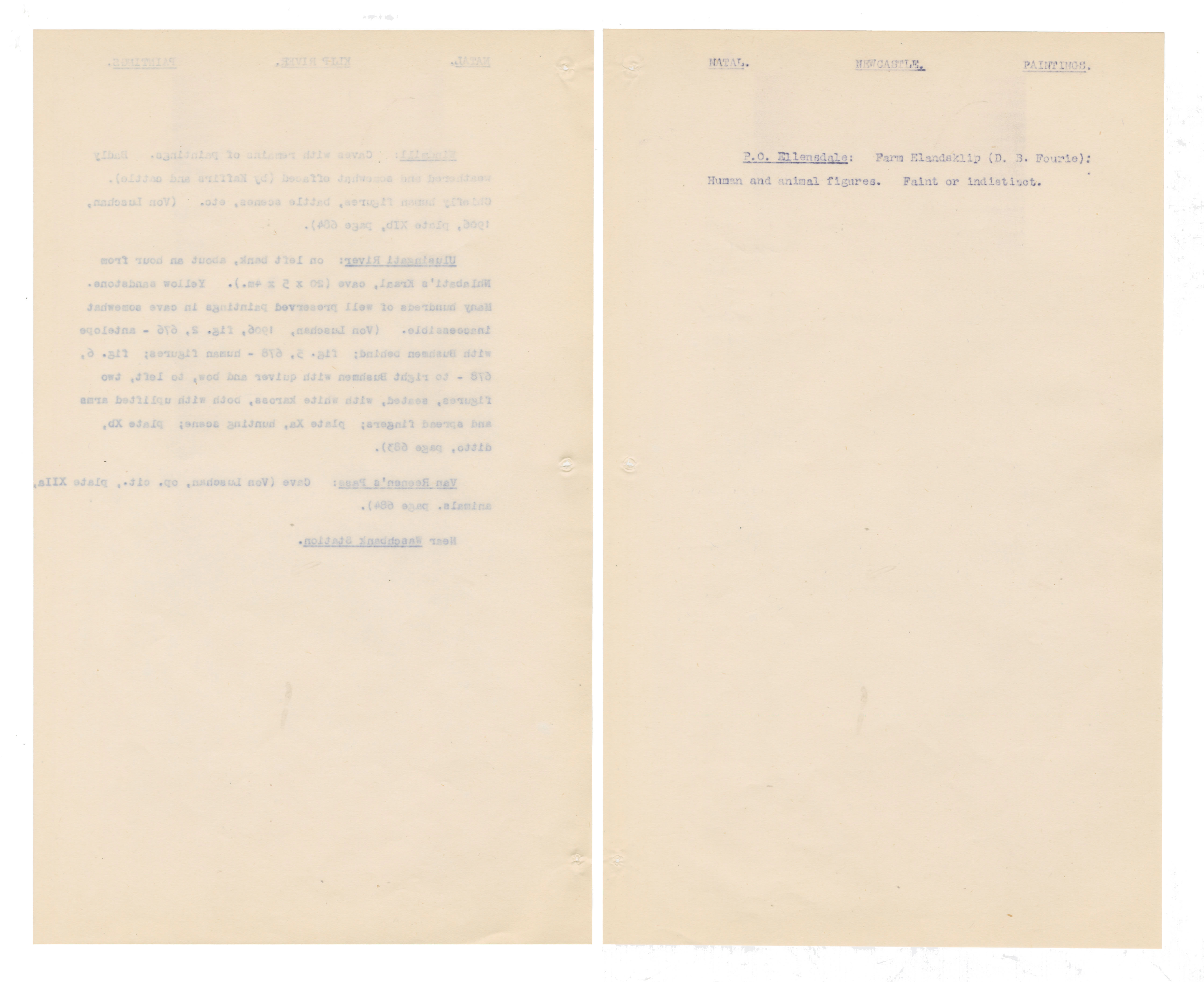 Typewritten notes (facsimiles?) on sheer paper about southern African rock engravings.